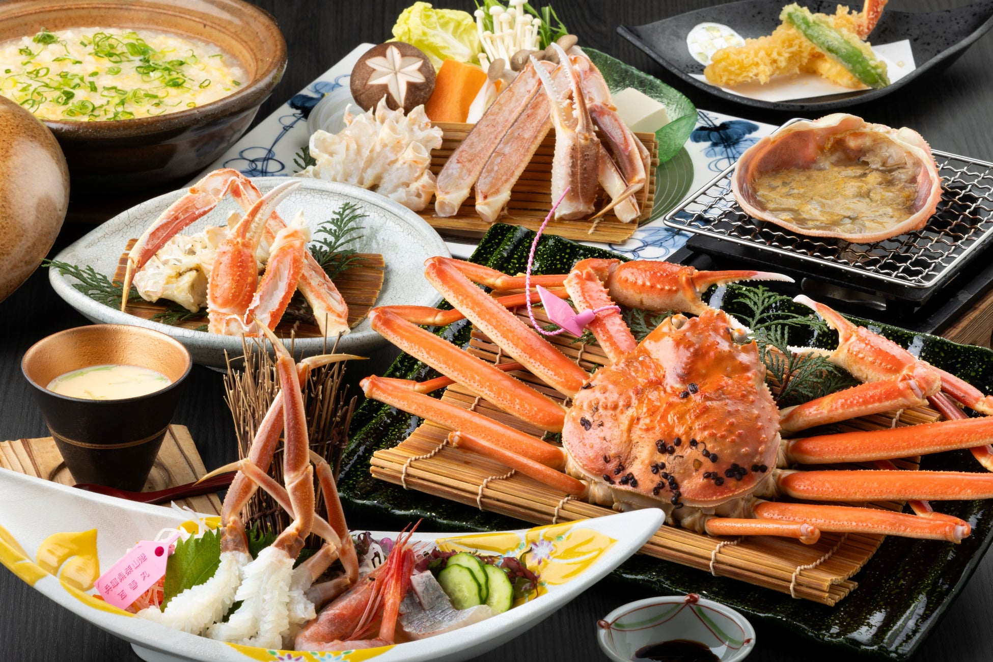 但馬産「活け松葉がに」をお一人様に2杯使用した昨年人気NO.1コース。本コースのみ茹でがには茹でたてをご提供します。その他、花咲くかに刺し・かにすき鍋・かに味噌甲羅焼・かに炭火焼・かに足天婦羅、かに雑炊など、松葉がにブランドを堪能できるフルコースです。