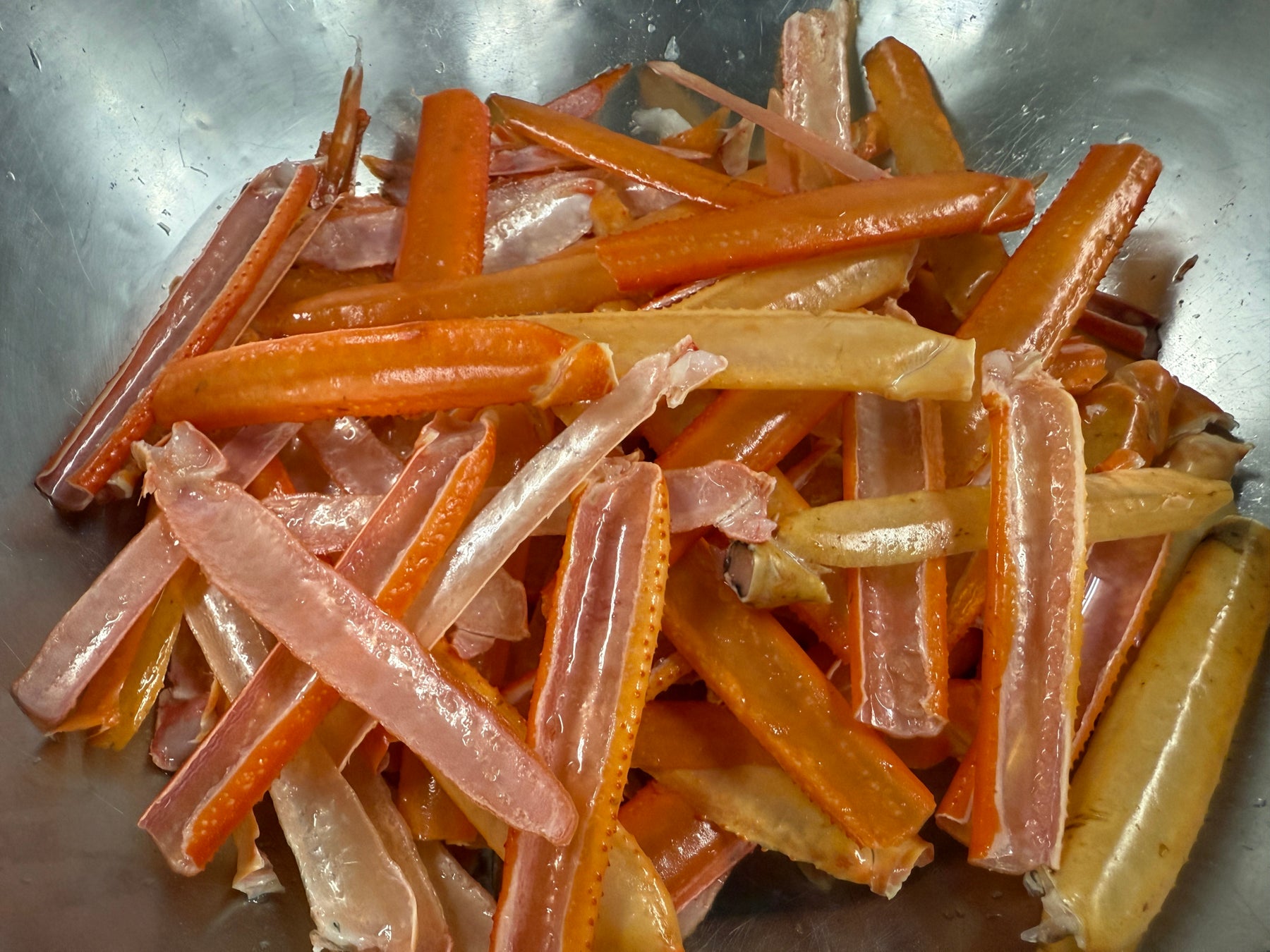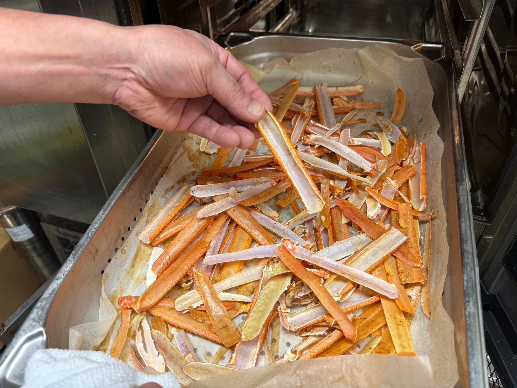 農林水産省が掲げる食品ロスの削減・食品リサイクルへの取組みに呼応して、かに刺しかにすき鍋など料理の仕込みの際、調理場で発生したかに殻を廃棄するのではなく乾燥・粉砕し、再び食材にすることで食品廃棄量を減らしてアップサイクル(より付加価値の高い製品に生まれ変わらせること)につなげ、資源を循環させることで、持続可能な生産と消費の形態を確保します。この取組みはSDGsの17のゴールの内、12番「つくる責任・つかう責任」、14番「海の豊かさを守ろう」への貢献を目指します。