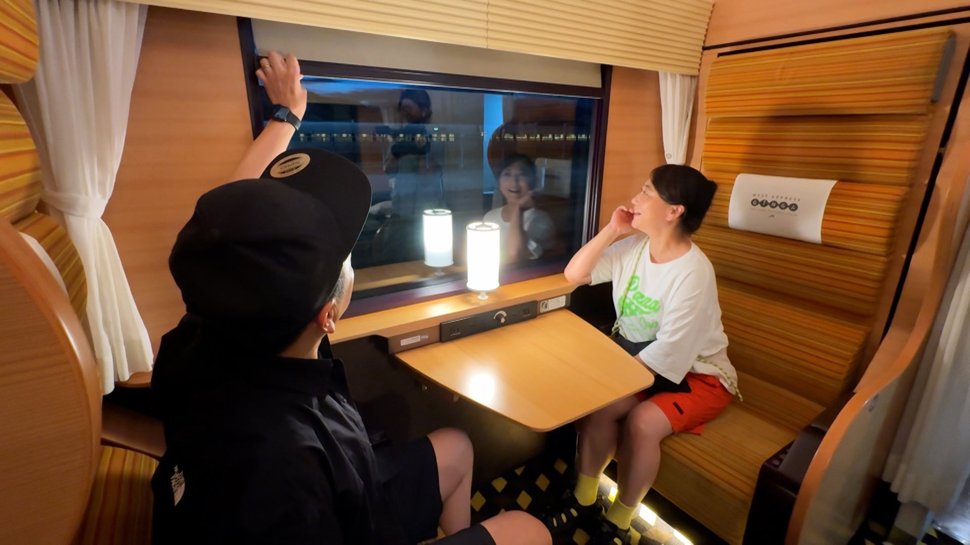 WEST EXPRESSは、JR西日本が誇る寝台列車。往年のブルートレインを思わせる瑠璃紺色の車両が印象的で、予約開始後すぐに完売するという人気ぶりだ。本来なら京都駅発のはずだが、2人は吹田総合車両所・京都支所から乗れることに!「今日も来る時にYouTube5本くらい見た」という礼二の興奮もさることながら、友近まで「私も2本くらい見た!気になるから」と告白。その予習力が、この旅では随所に発揮されることになる。