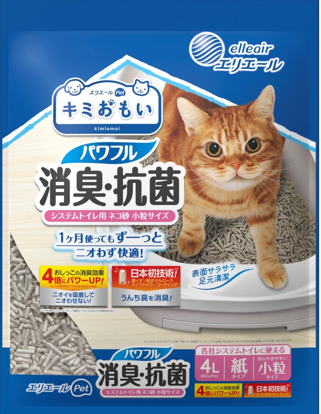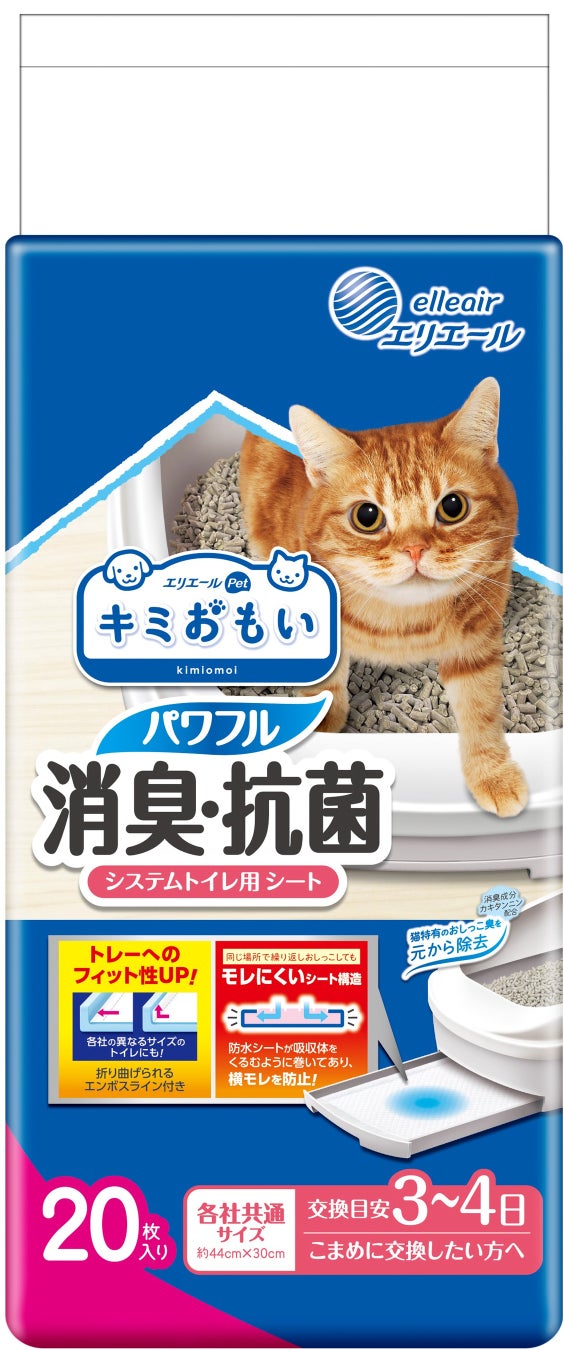 ネコちゃんのトイレ臭の悩みに、新次元の消臭力でアプローチ。『キミおもい パワフル消臭・抗菌 システムトイレ用ネコ砂・シート』新発売