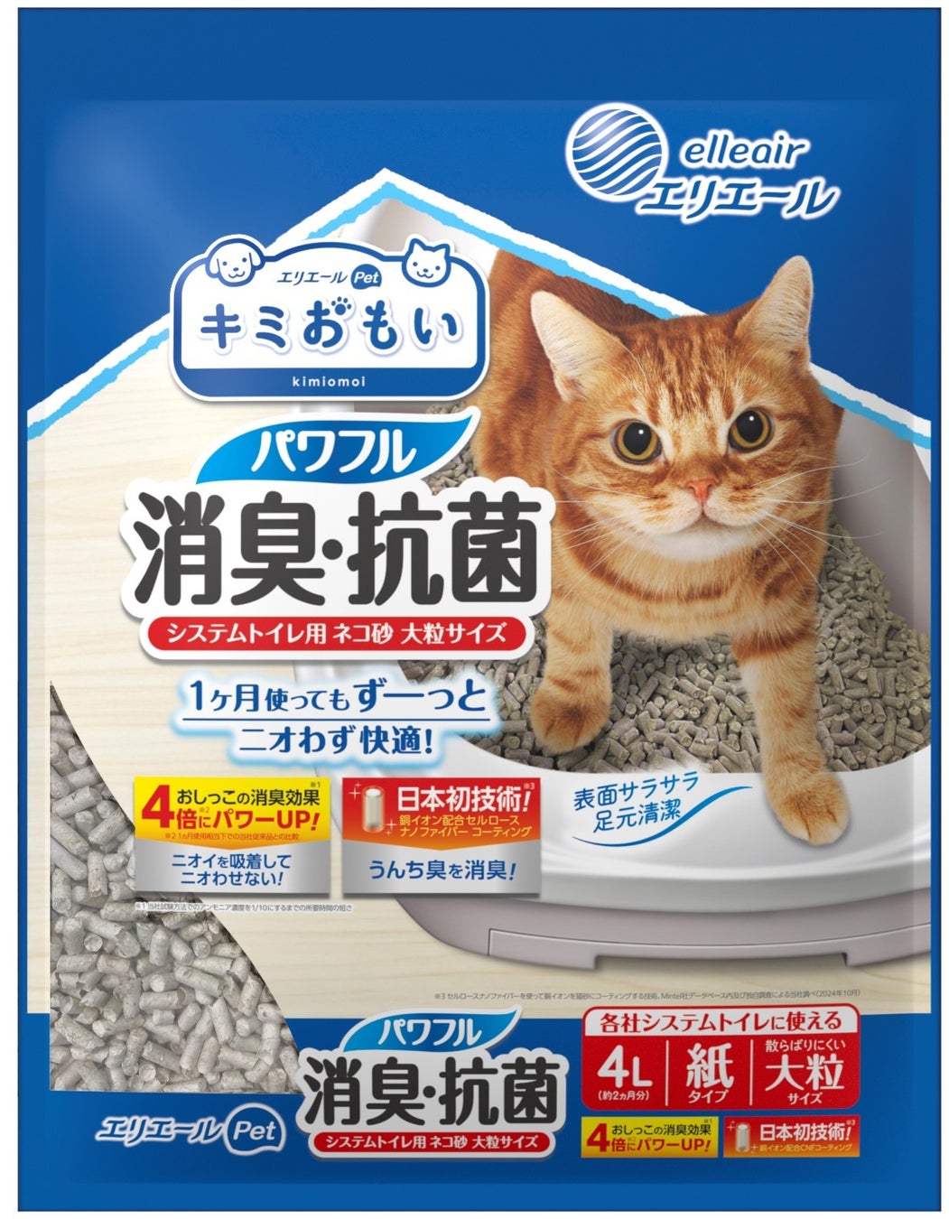 衛生用紙製品 No.1 ブランド※3の「エリエール」を展開する大王製紙株式会社(本社:東京都千代田区)のペット用品ブランド「エリエールPet キミおもい」は、新次元の消臭力を実現した『キミおもい パワフル消臭・抗菌 システムトイレ用ネコ砂』及び『キミおもい パワフル消臭・抗菌 システムトイレ用シート』を2025年4月21日(月)から発売します。