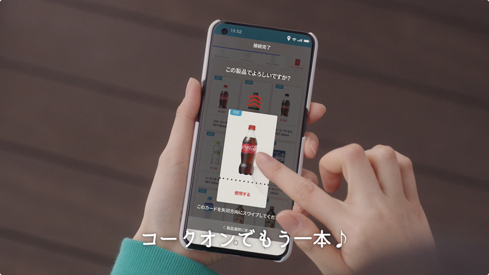 「Coke ON(コークオン)」は、アプリ内でスタンプを15個ためて1本分のドリンクチケットを獲得 できる、おトクで便利なコカ・コーラの公式スマホアプリです。ドリンクチケットは、「Coke ON」対応自販機で、お好きなコカ・コーラ社製品1本と無料で交換できます。キャッシュレス決済機能「Coke ON Pay」対応自動販売機では、PayPay、LINE Pay、楽天ペイ(アプリ決済)、 au PAY、d払い、Apple Pay、メルペイなどに対応し、自動販売機チャネルにおける製品購入の選択肢の幅をさらに広げました。「Coke ON」は2022年3月現在、3,400万ダウンロードを超え、全国41万台の対応自動販売機でご利用いただけます。