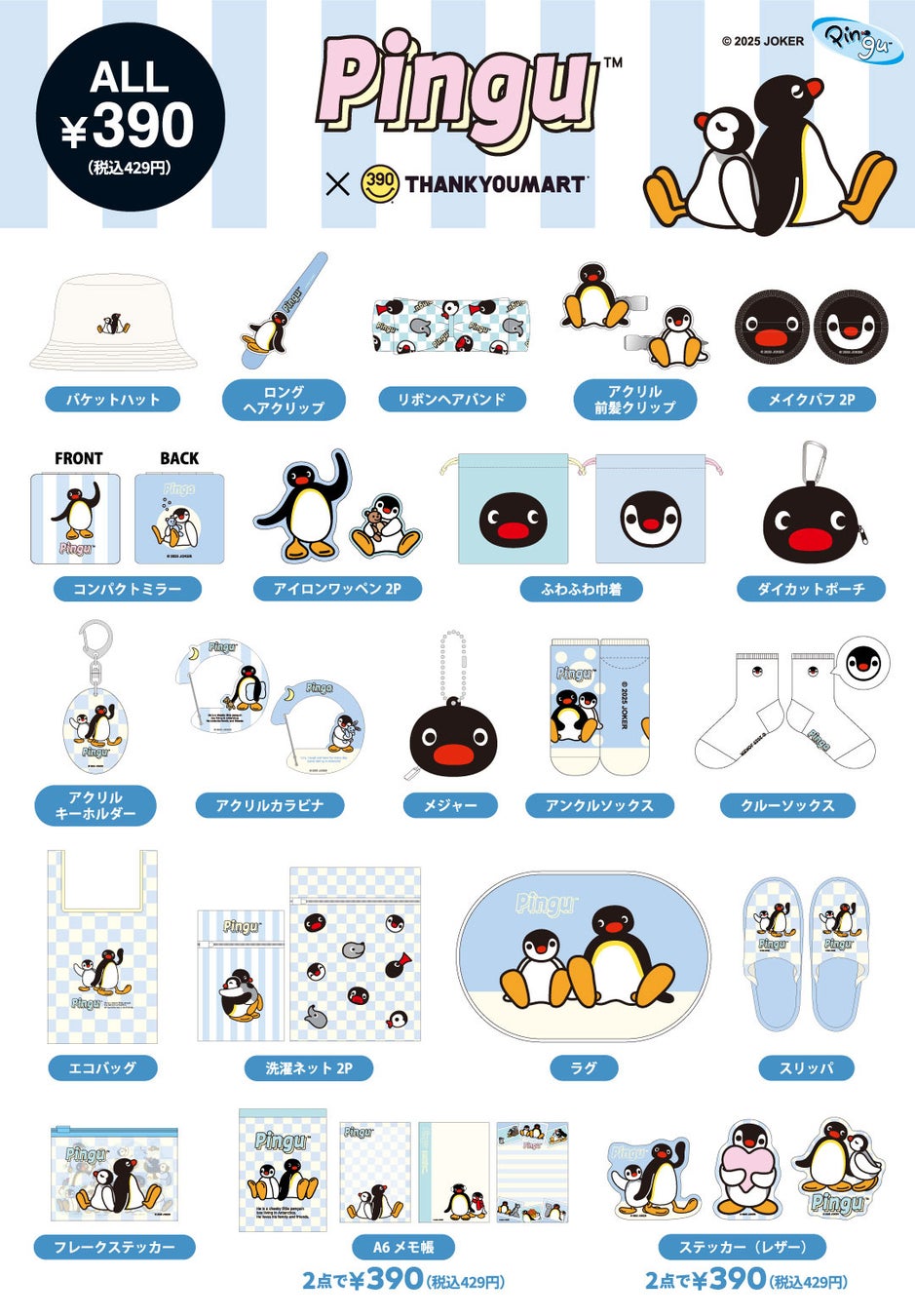 「Be Smile, Be Kawaii」をテーマに、全品390円(税込429円)でバラエティ豊かなアパレル雑貨を揃える「サンキューマート」は、世界一有名なペンギン「ピングー」とのコラボレーション雑貨を、全国のサンキューマート店舗で4月中旬より入荷次第販売開始いたします。