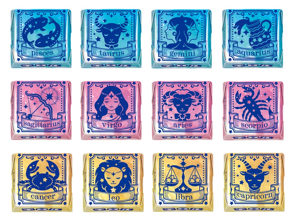 星座イラストがデザインされた個包装は全12種。※ランダムでの封入となります。