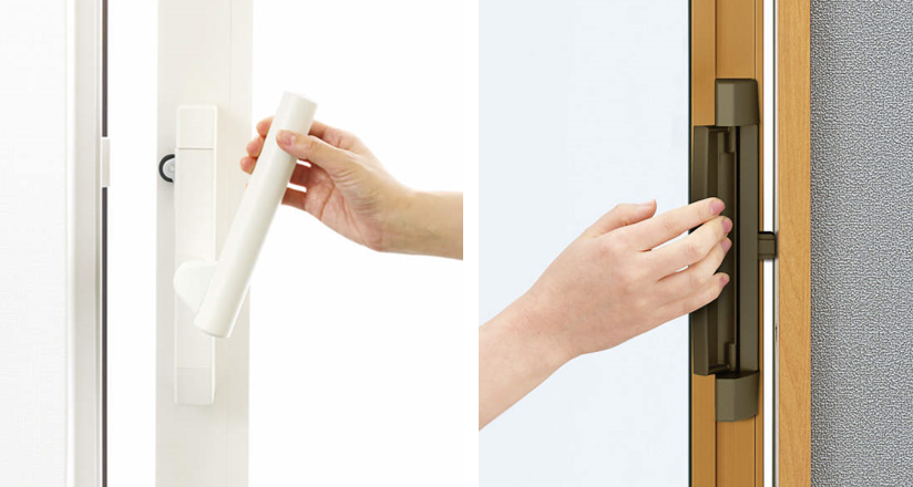ハンドル直径のサイズや引手の指のかかり方を考慮し、子どもからお年寄りまで使いやすいユニバーサルデザインに配慮。最も力が必要な窓の動かし始めに、戸先側にサポート部品がせり出し、「てこの原理」で窓を押し出すことで初動を補う仕組みで、窓の開閉操作に必要な力の45~50%を低減。これまでは新築を建てる際にオプション部品として選択できる仕様でしたが、既設の窓(樹脂窓「APW 331」「APW 431」)に後付けもできるようになりました。