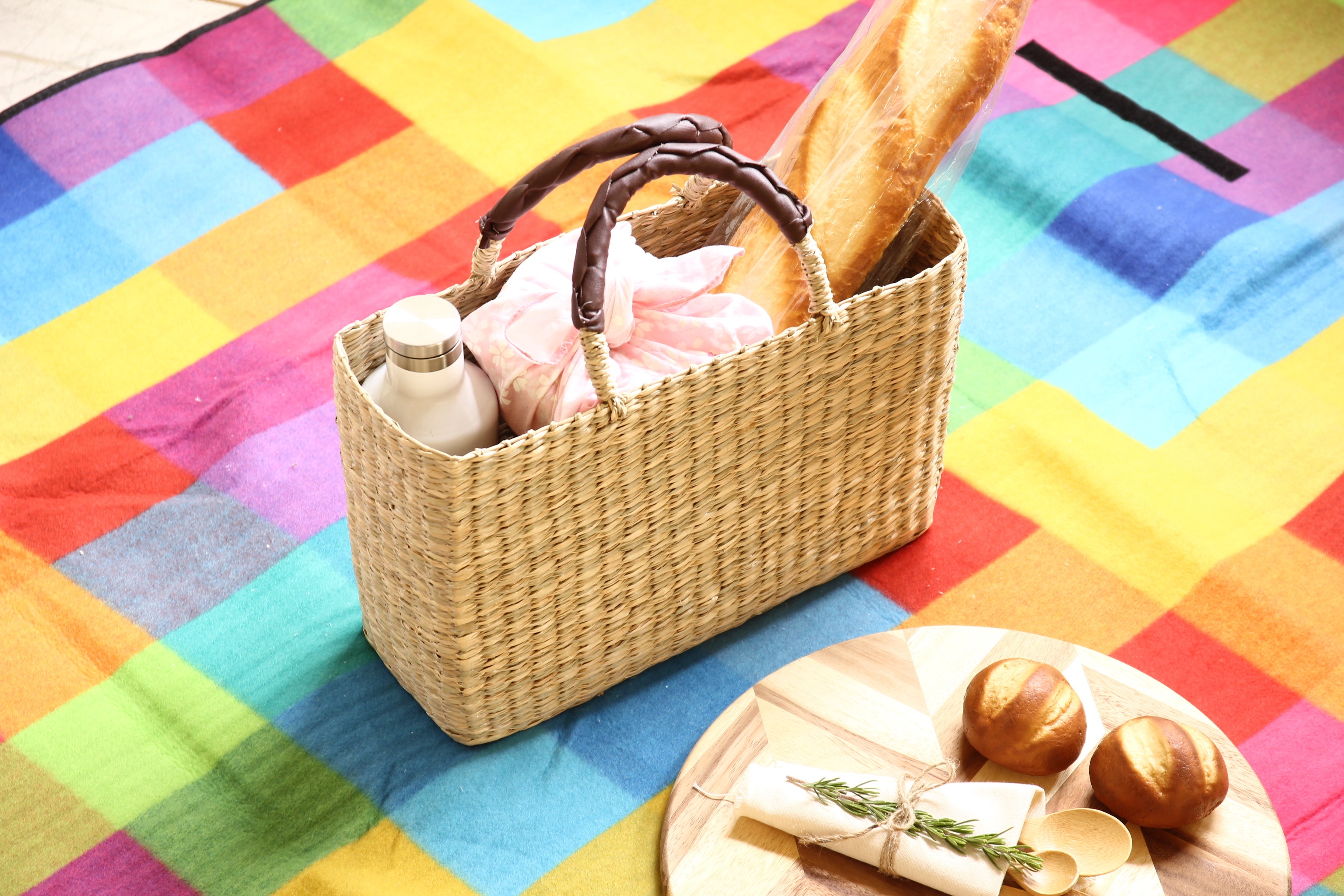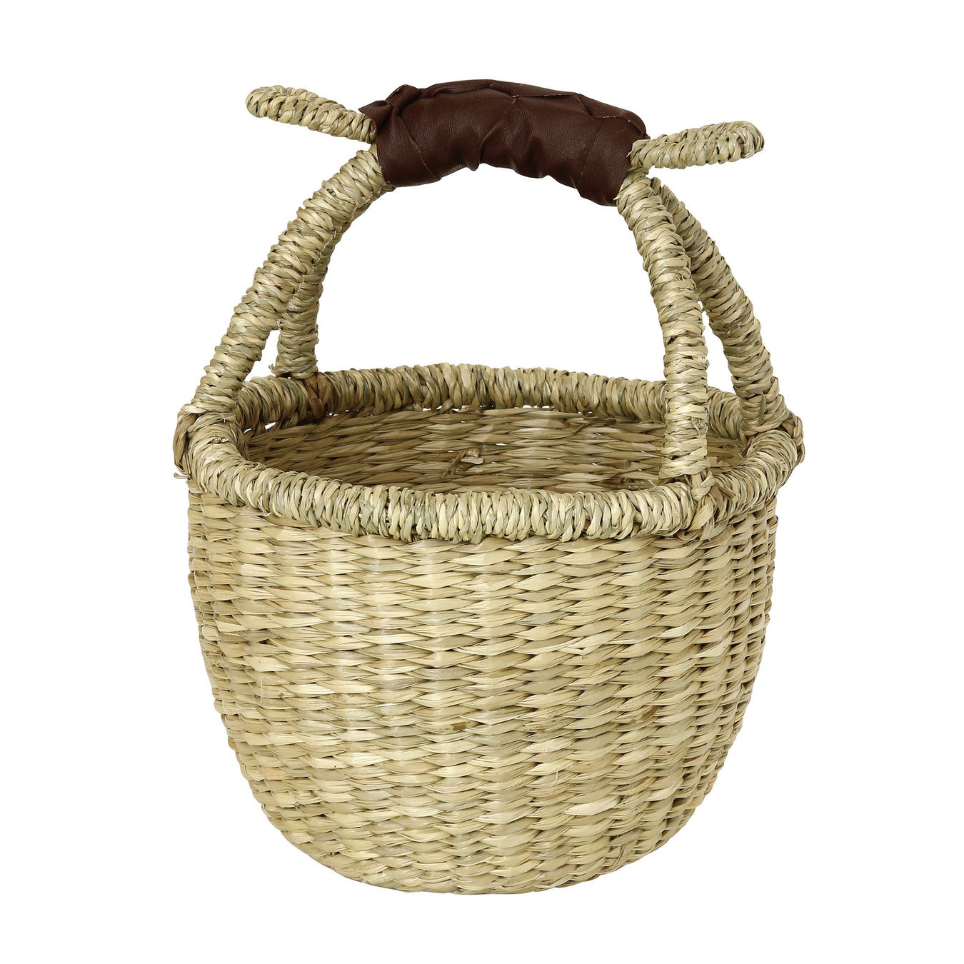 素材:かご:シーグラス、ハンドル装飾:ポリウレタン