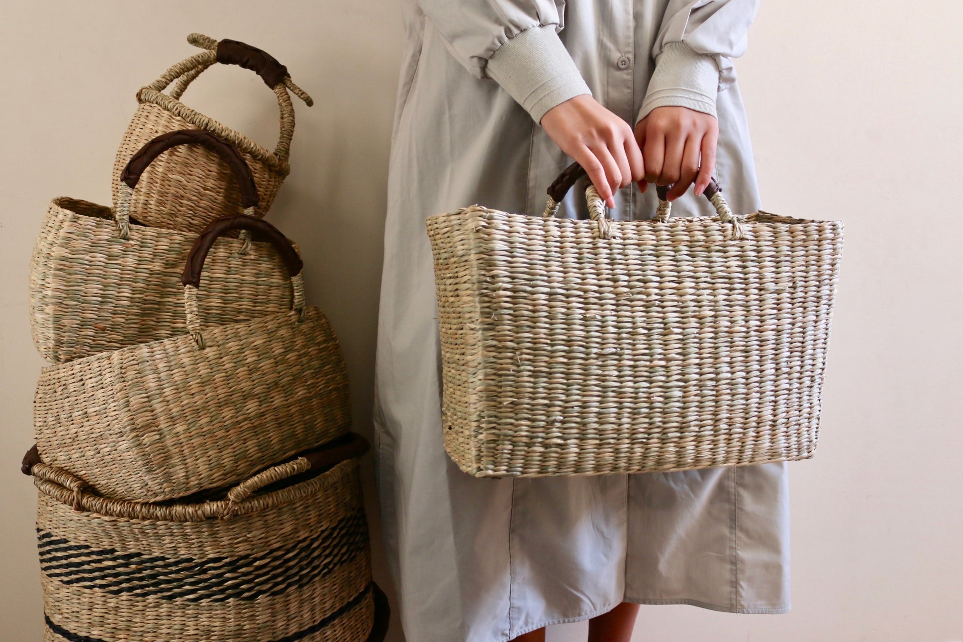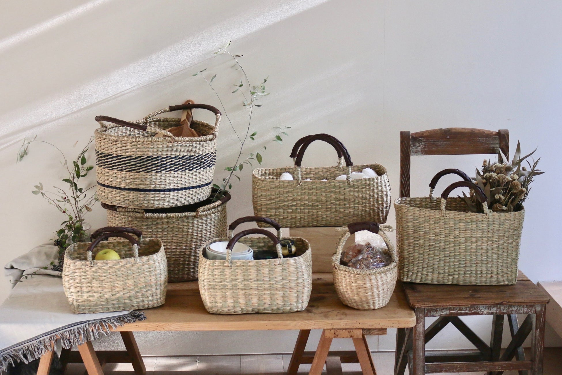 「シンシア シーグラスバスケット」は、あたたかみのある自然な色合いと、柔らかい手触りが魅力的な天然素材のカゴシリーズです。お出かけだけでなく、収納にも便利なサイズの7型展開。丁寧な暮らしに似合うよう、気の利いたサイズ感を追求しました。
