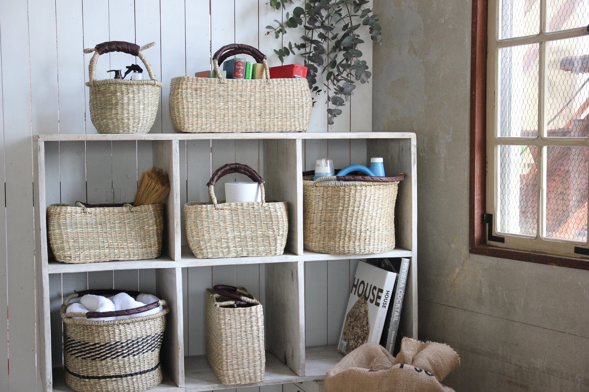 ◆ベトナムでひとつひとつ丁寧に編みこまれたシーグラス素材のバスケット