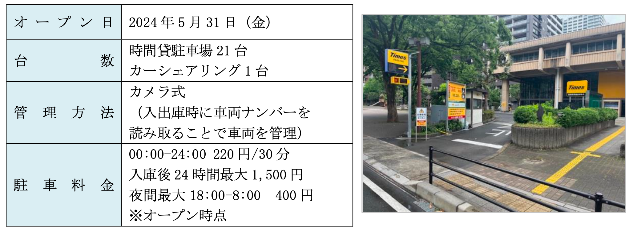 本実証実験では、当社グループ会社のタイムズモビリティ株式会社が運営するカーシェアリングサービス「タイムズカー」をはじめ、さいたま市の連携企業が展開する小型EV、EVスクーターなどのモビリティポートを併設した「タイムズ旧市民会館おおみや」駐車場を開設します。そのほか、駐車場利用者に対して、目的地などのアンケート調査や利用状況のモニタリング等を実施いたします。