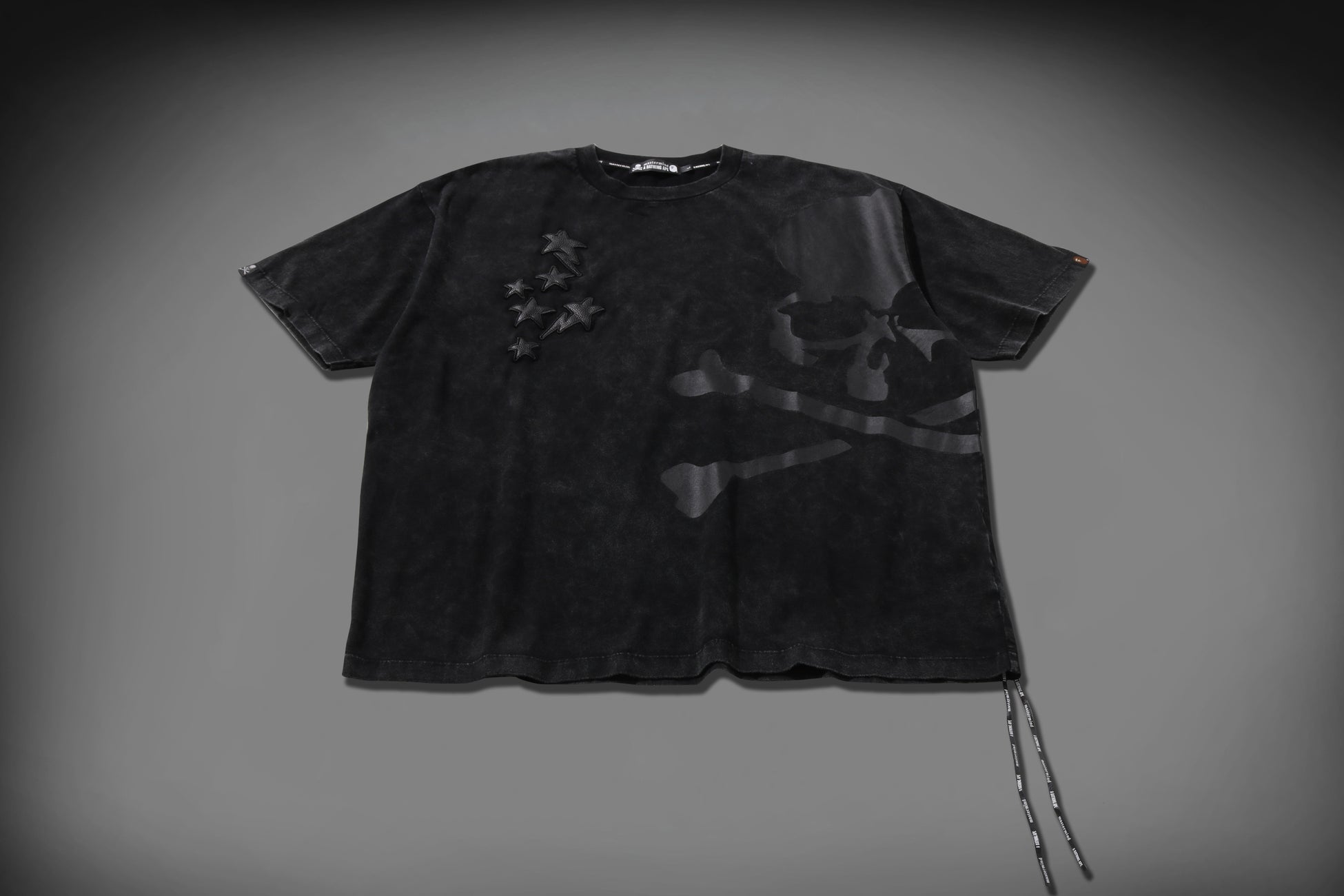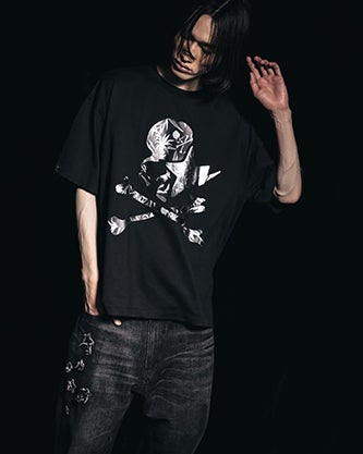 「LEATHER STA PATCH SKULL RELAXED FIT TEE」は、ユーズド加工を施したリラックスフィットのTシャツです。STAのレザーパッチとSKULLのプリントを組み合わせ、左裾にはコラボレーションを象徴するレザーストラップが付属します。