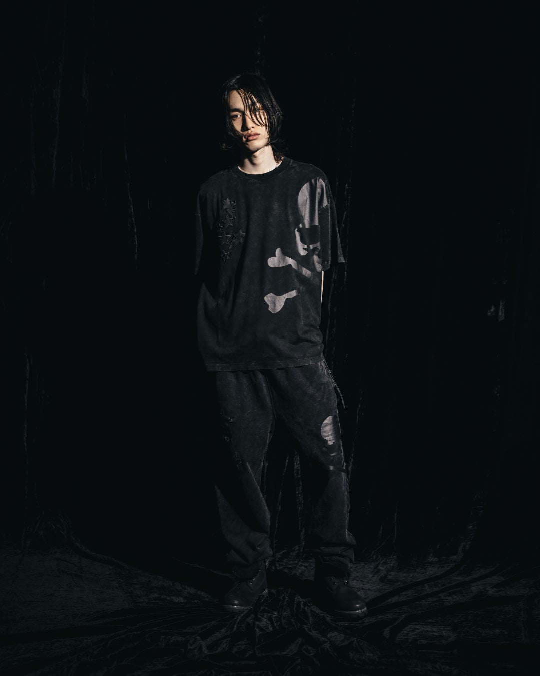 「LEATHER STA PATCH SKULL RELAXED FIT SWEATPANTS」は、ユーズド加工による風合いを生かしたリラックスシルエットのスウェットパンツ。STAのレザーパッチとSKULLのプリントを同系色でまとめ、控えめながらも存在感のあるデザインに仕上げました。