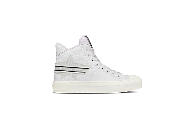 マリア・グラツィア・キウリがデザインし、毎シーズン生まれ変わる「ウォーキンディオール」スニーカーは、今や世界中の女性のワードローブに欠かせない存在になっています。ディオールのクルーズ 2022 コレクションでは、「ウォーキンディオール スター」と名付けられた3種類のハイトップモデルが発表されました。すべてのモデルには、ムッシュ ディオールの「ラッキースター」へのオマージュが込められた「ディオール エトワール」モチーフと、象徴的な「CHRISTIAN DIOR」のシグネチャーがあしらわれています。エンボス加工を施したホワイトレザーと、レザーとテクニカルファブリックを組み合わせたホワイト×ブルーのカラーバリエーションが揃い、ドレスやパンツと合わせてエレガントかつスポーティなスタイルが楽しめます。これらのアイテムは1月より公式オンラインブティックおよび全国のディオールブティックでお求め頂けます。