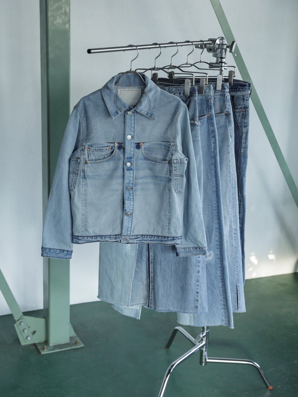 それぞれ色落ちやダメージが異なるアップサイクルデニム。