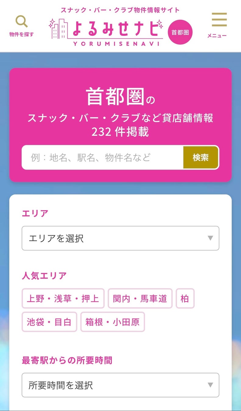 * 「よるみせナビ」の運営は、株式会社第一興商の完全子会社で、宅地建物取引業の免許を所有する株式会社ファーストプロパティーズが行います。