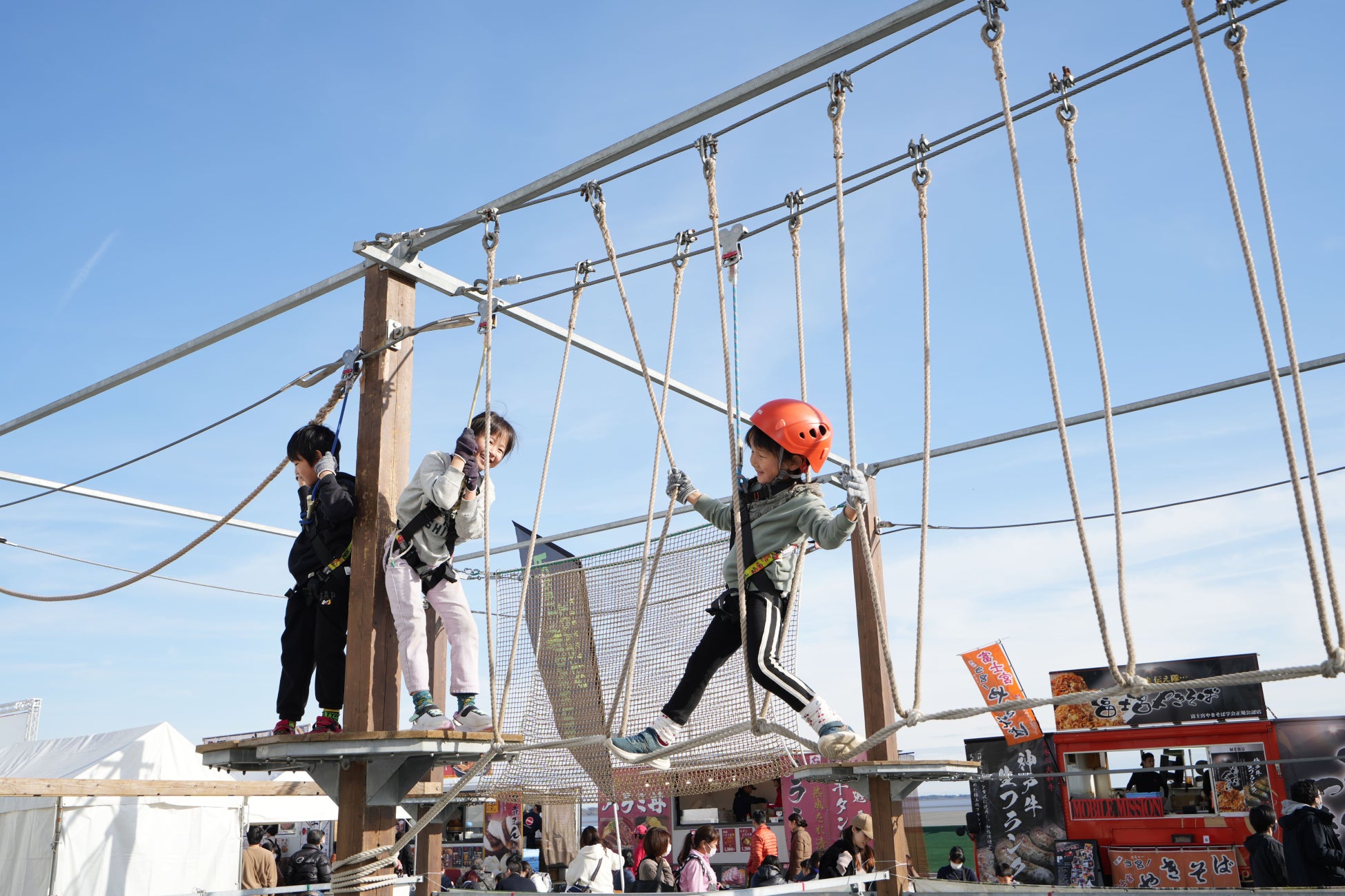 「アスレチック体験」や「トランポリン」など、毎年お子さんに大人気のアクティビティが盛りだくさん!(有料)