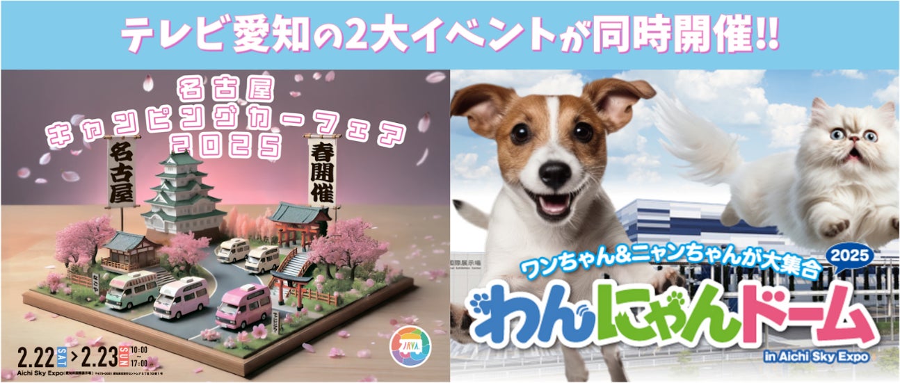 「名古屋キャンピングカーフェア 2025 SPRING」と、東海地区最大級で世界中の犬・猫が集まるペットイベント「わんにゃんドーム2025 in Aichi Sky Expo」が、アイチスカイエキスポ(愛知県国際展示場)にて同時開催します。
