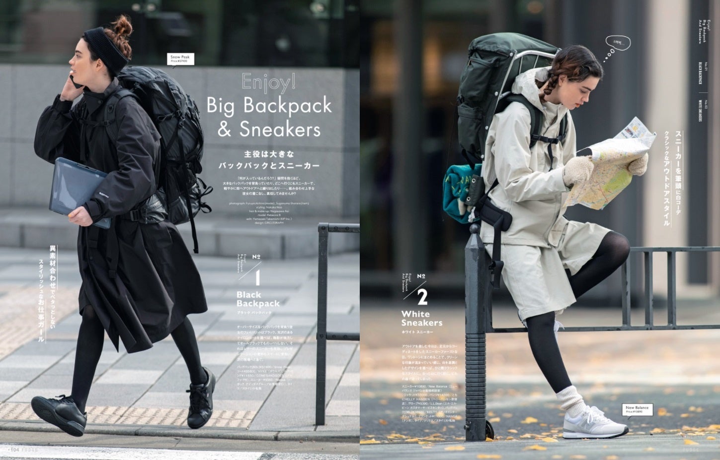 「何が入っているんだろう?」疑問を抱くほど、大きなバックパックを背負ったり、どこへ行くにもスニーカーで、軽やかに街へアウトドアへと繰り出したり……。組み合わせ上手な彼女の着こなし、真似してみませんか?
