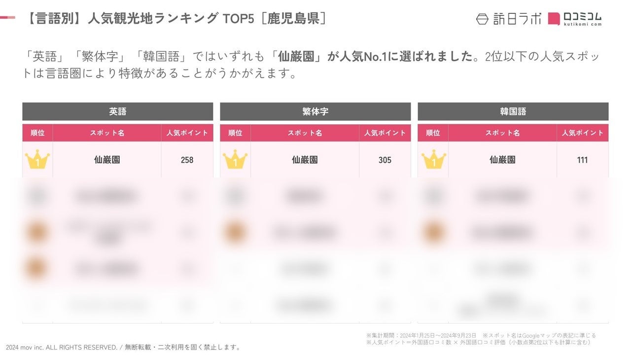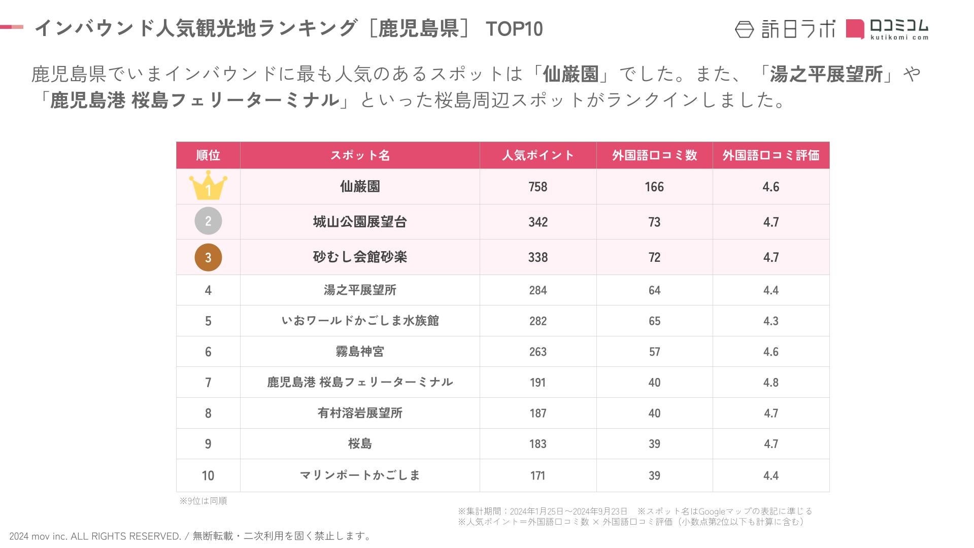 【独自調査】2024年最新:外国人に人気の観光スポットランキング[鹿児島県編]1位は「仙巌園」!| インバウンド人気観光地ランキング #インバウンド #MEO