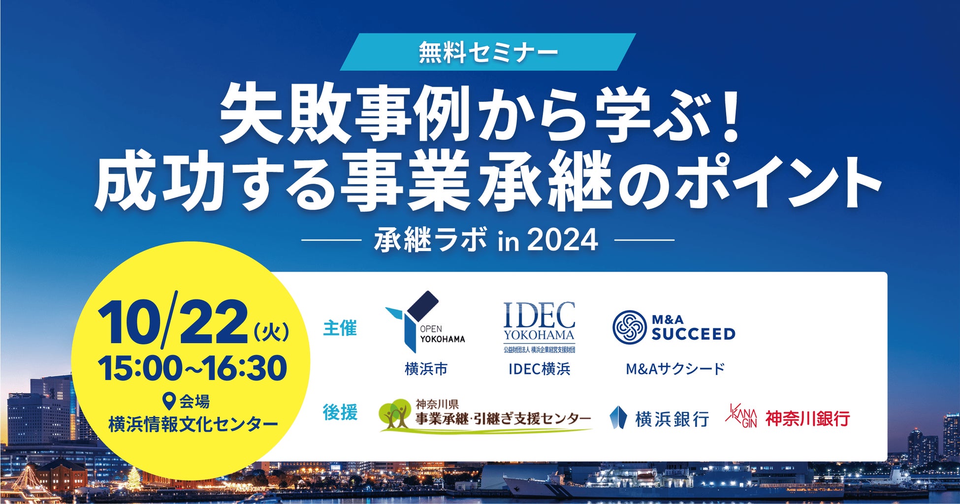 <横浜市×IDEC横浜×M&Aサクシード 3者主催セミナー>失敗事例から学ぶ!成功する事業承継のポイント