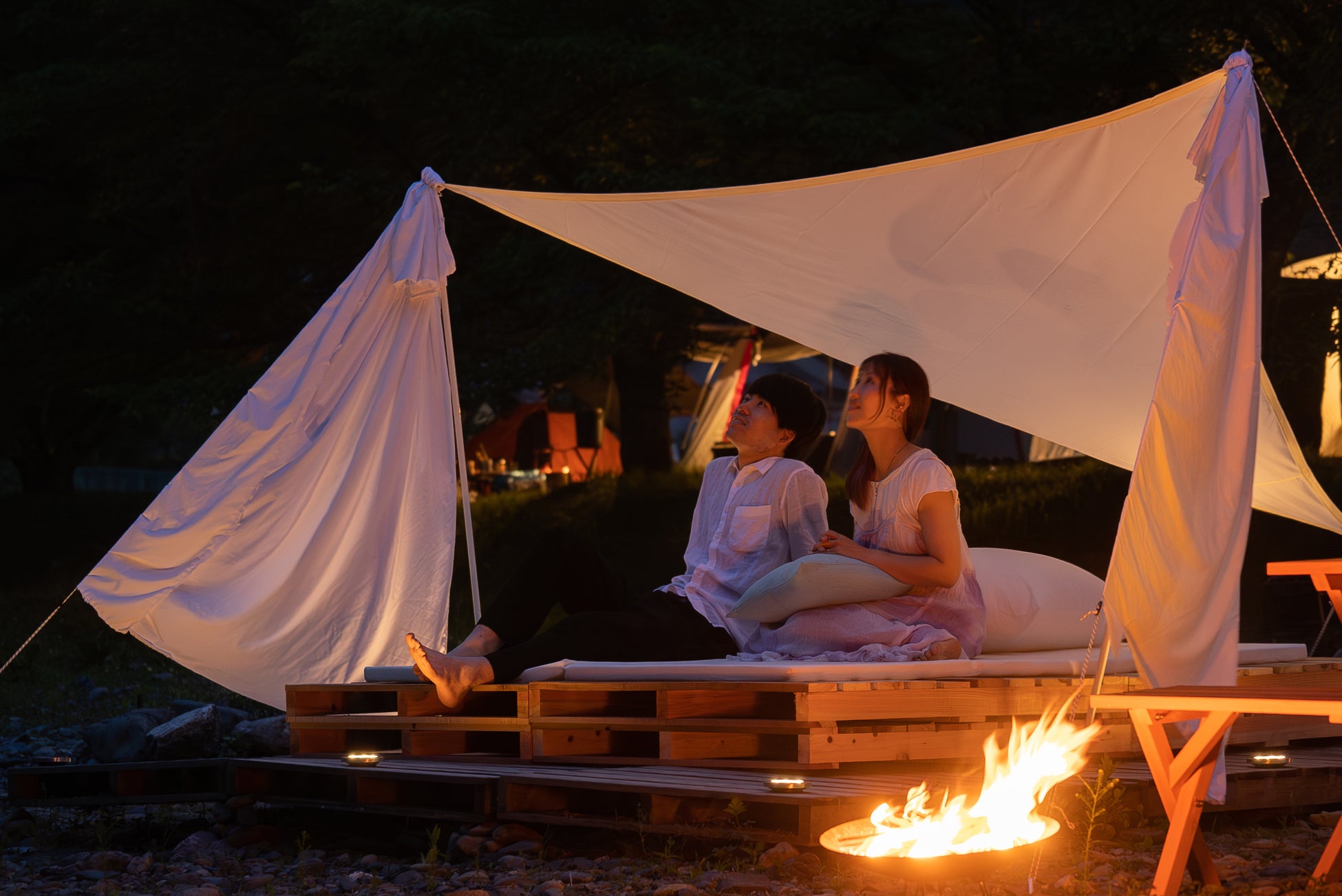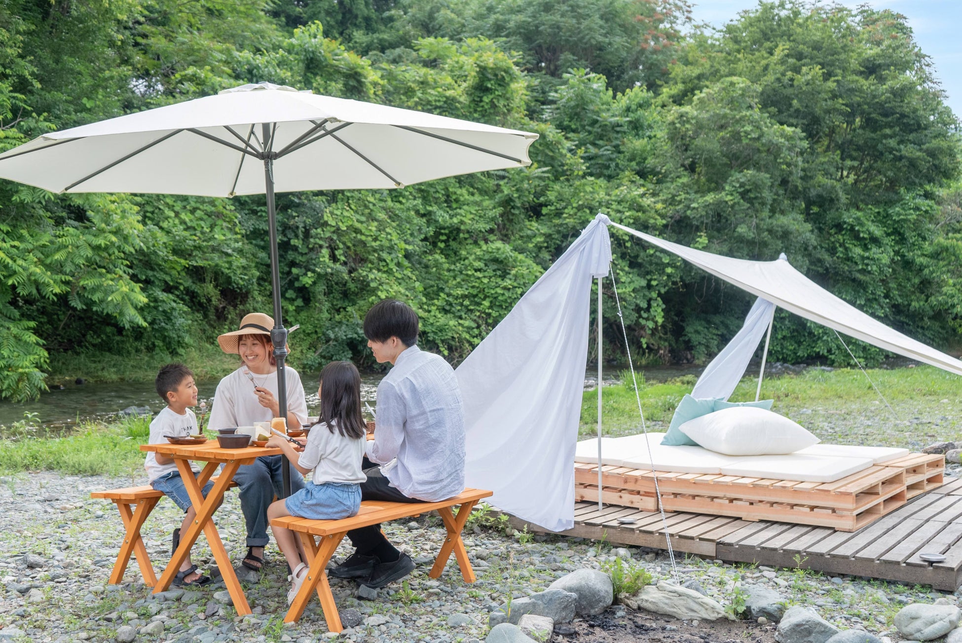 目の前に流れる清流を楽しむ「リバービーチエリア」の設置や、川のせせらぎと星空を楽しむことができる期間限定のアクティビティをご用意。