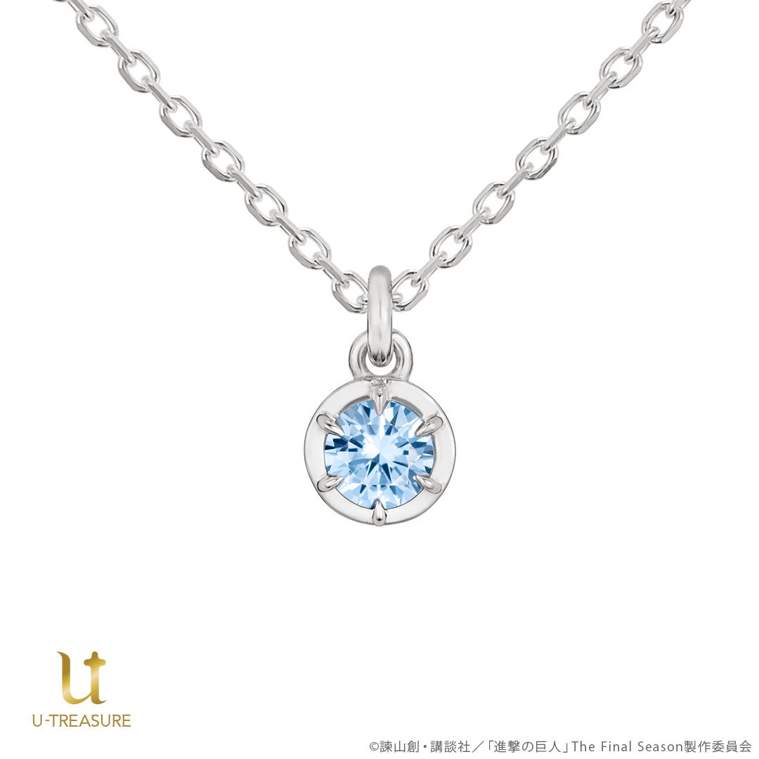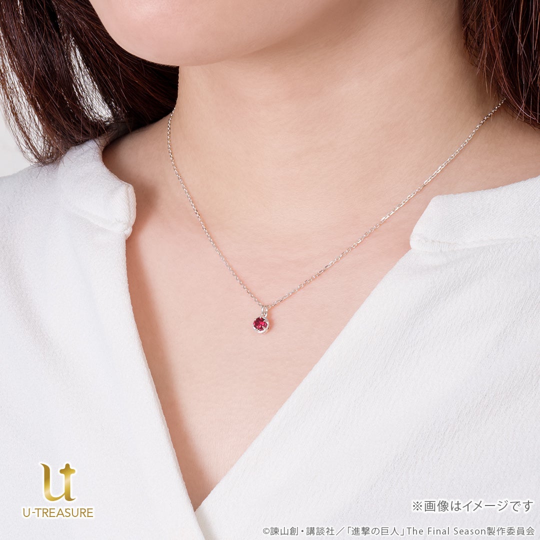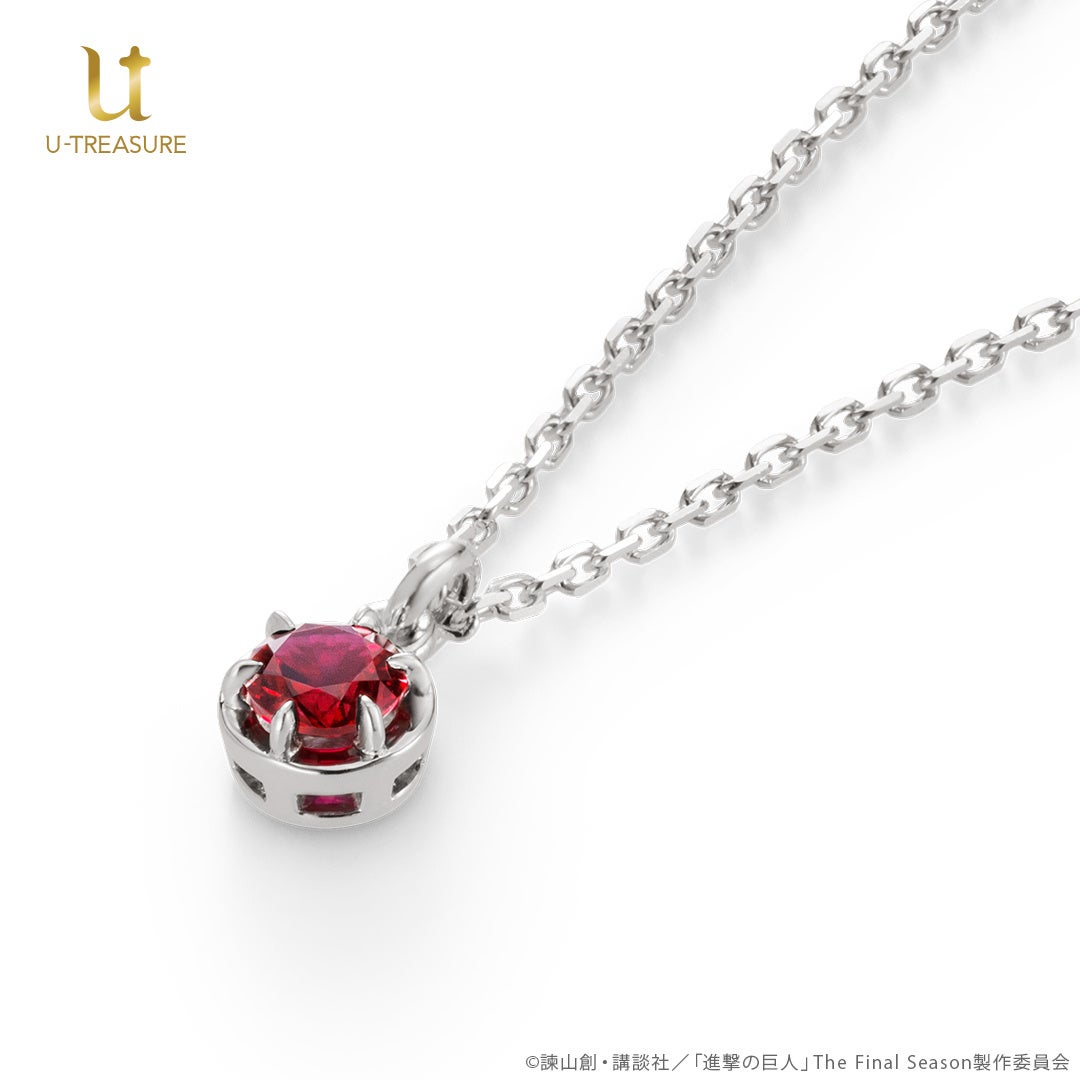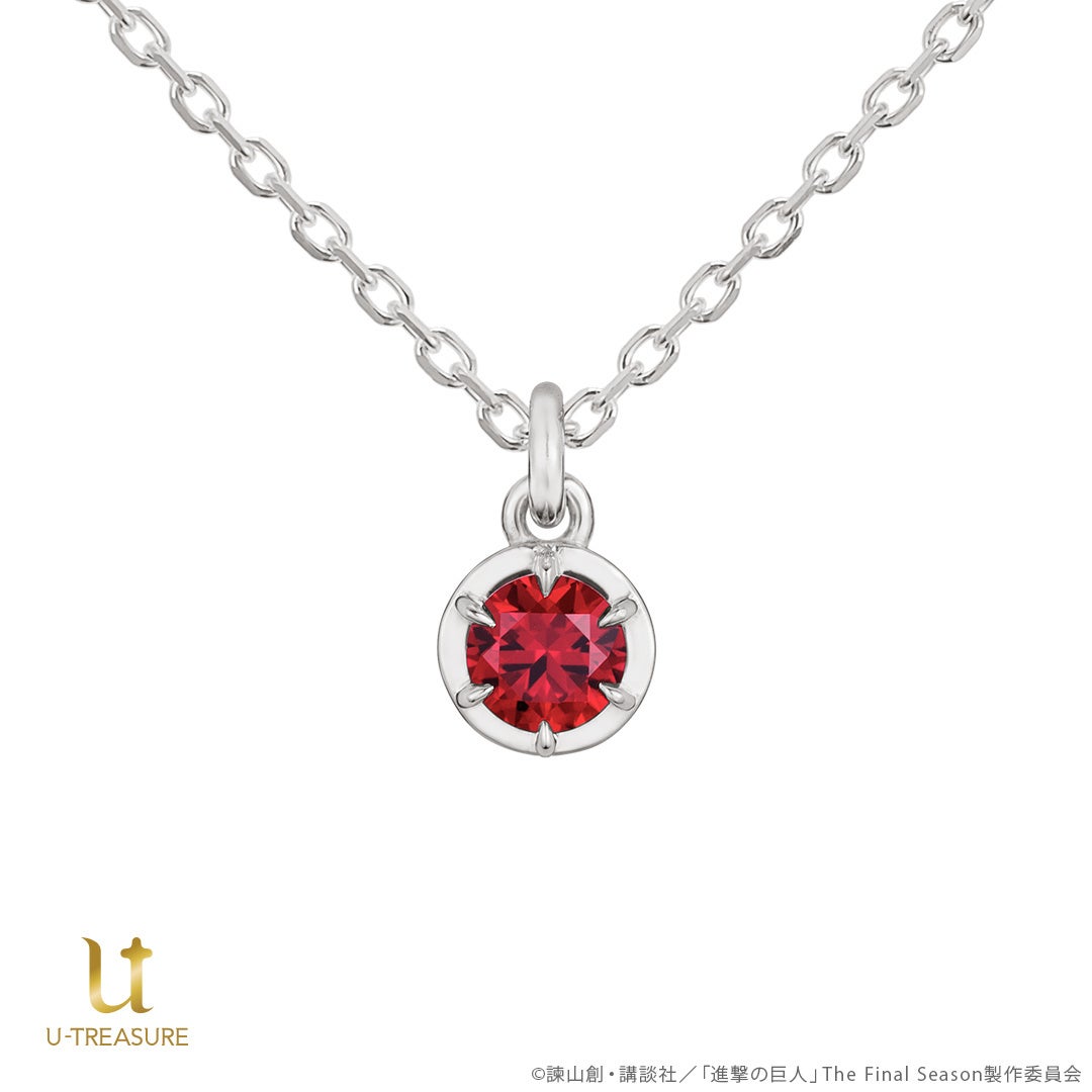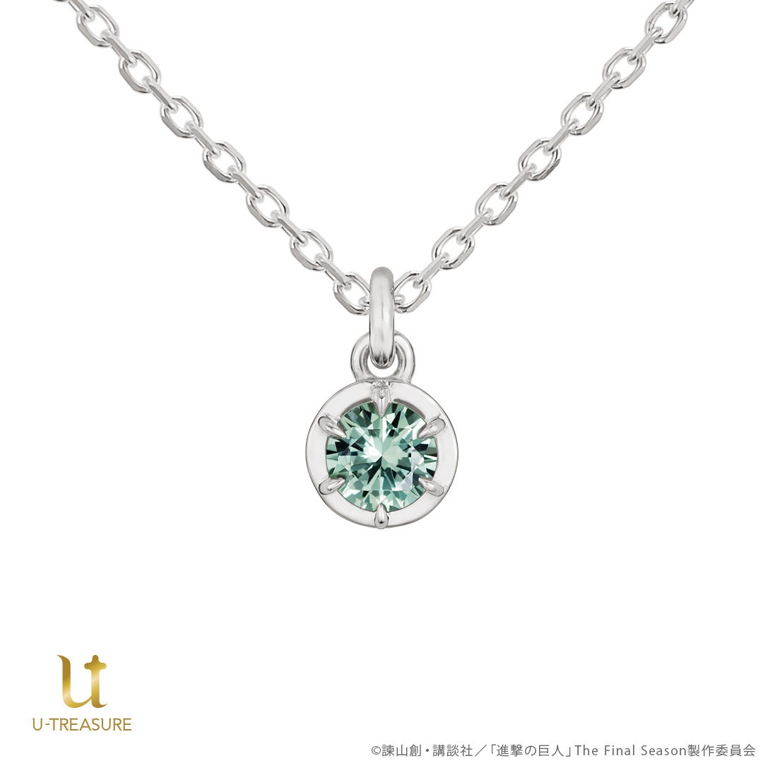TVアニメ『進撃の巨人』一粒石ネックレス。各団員をイメージしたカラーストーンを留めたデザイン。裏面にはそれぞれのモチーフの刻印を。2024年8月16日(金)まで予約受付