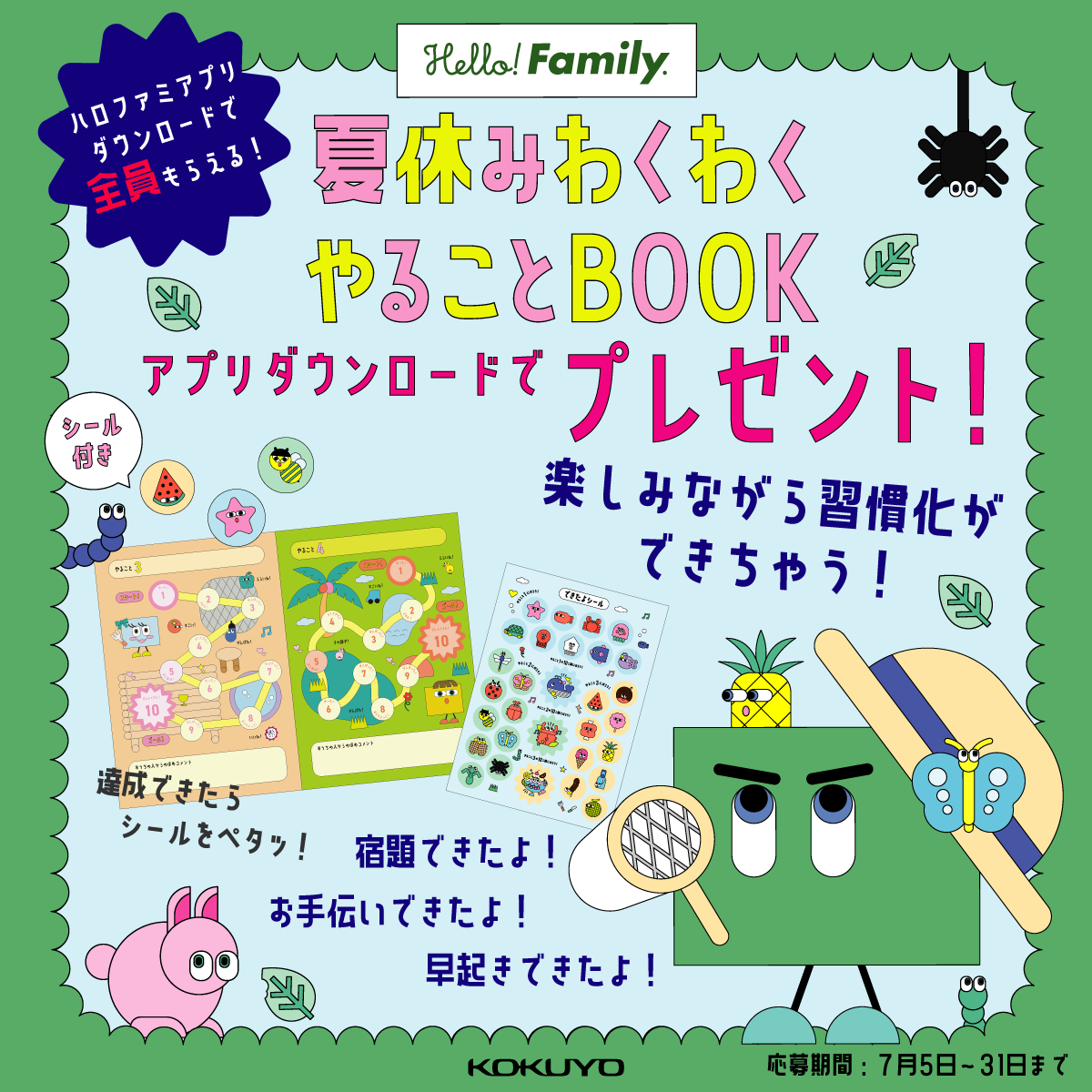 コクヨ公式「ハロファミアプリ」ダウンロードで全員もらえる! 楽しみながら習慣化!夏休みわくわくやることBOOKプレゼントキャンペーンを実施! ○夏休みわくわくやることBOOKプレゼントキャンペーン Webサイト |