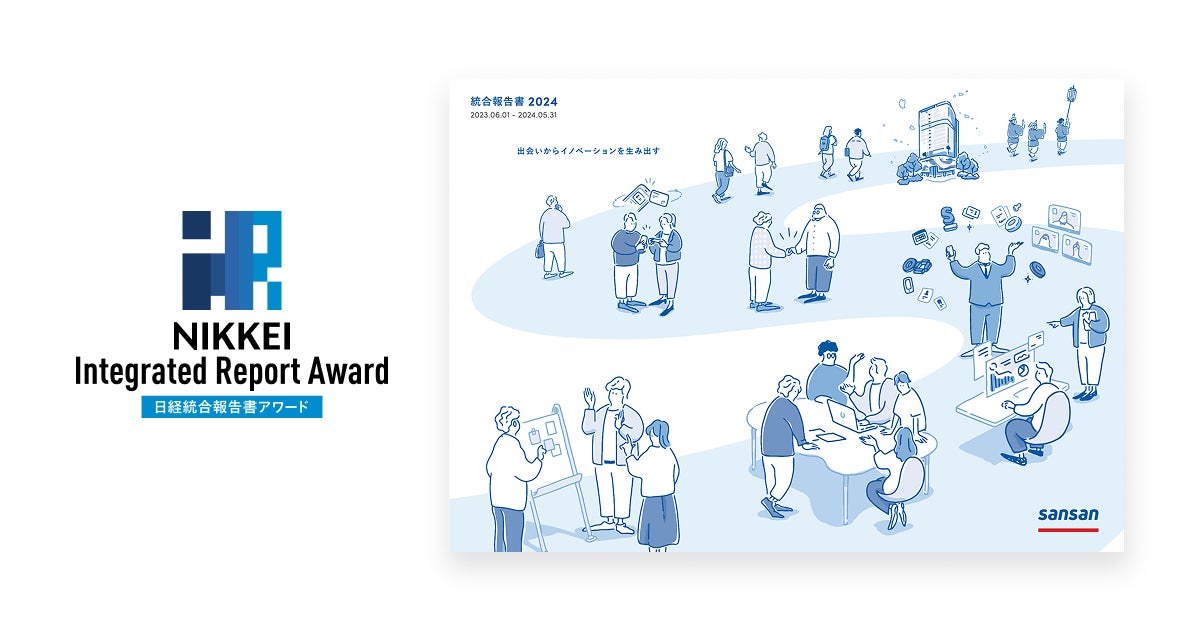 Sansanは2020年より、ステークホルダーの皆さまへ当社グループが目指す将来像を分かりやすく伝えるため、統合報告書を作成しています。2024年版の統合報告書では、トップメッセージに加え、人的資本に関する「ダイバーシティ・エクイティ&インクルージョンの推進」や、「TCFD提言に基づく気候変動開示」などのESG情報について充実した開示を行ったことが高く評価され、今回の受賞となりました。