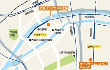 都心近接地型の賃貸ウェットラボを利用することで、都心部に集積する大学および医療機関等との共同研究や異業種企業とのコラボレーションを通じて、研究開発のさらなるイノベーションの創出やシーズの事業化が可能になります。「三井リンクラボ中之島」が位置する中之島は、複数路線から徒歩圏内にあるなど通勤利便性に優れており、人材獲得においても優位性のある立地です。
