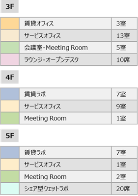 3・4・5階 サービスオフィス区画(23区画 1人~13人部屋)