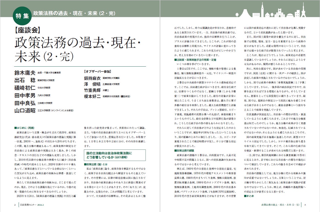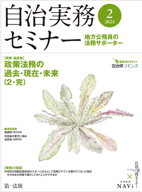 【自治実務セミナー】自治体法務に関する旬なテーマを毎月お届け!2月号では、前号に引き続き「政策法務の過去・現在・未来」について、著名な研究者の座談会のレポートを掲載!