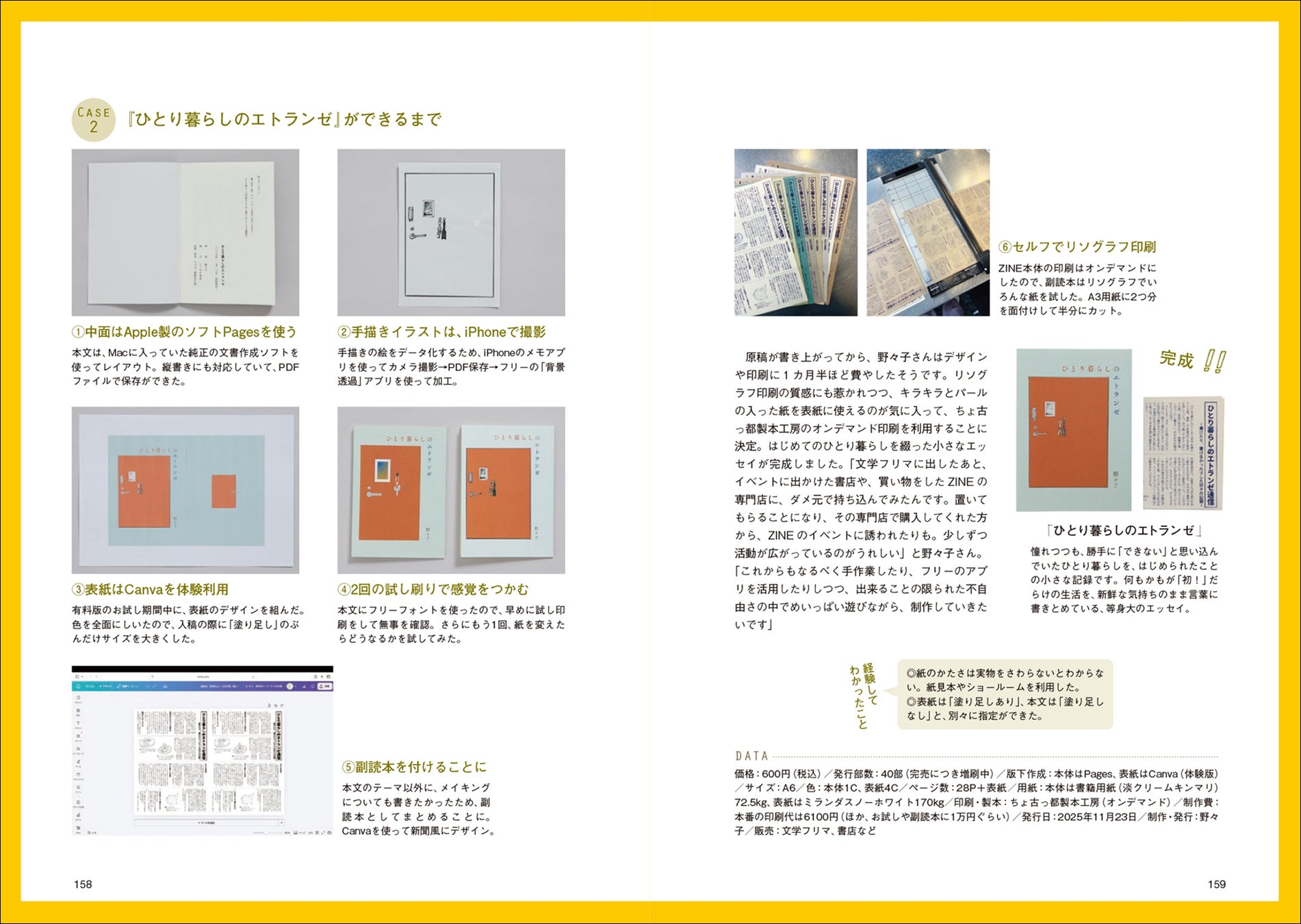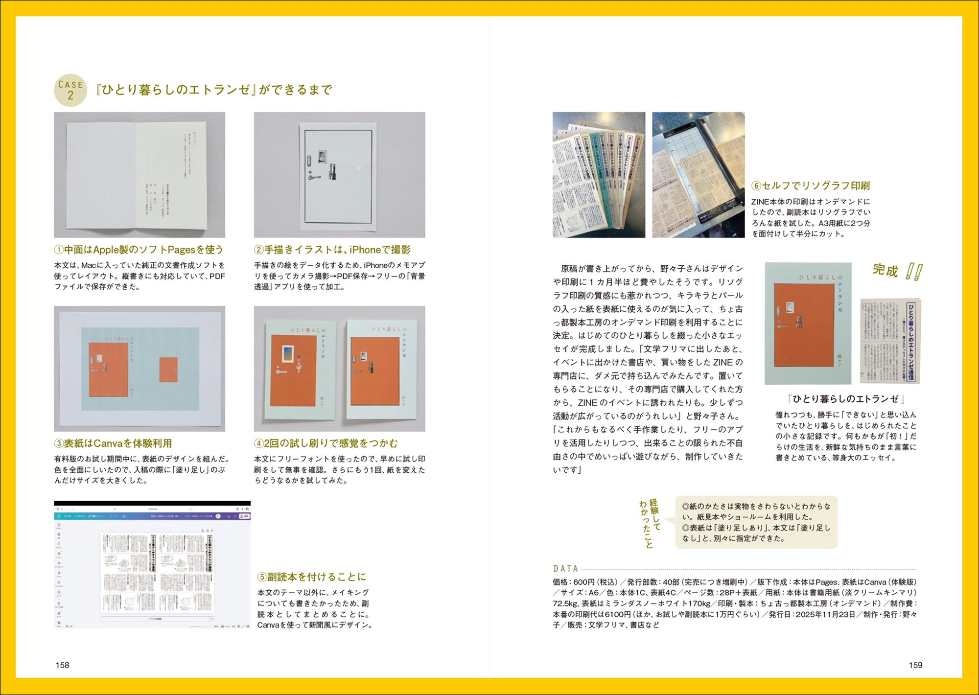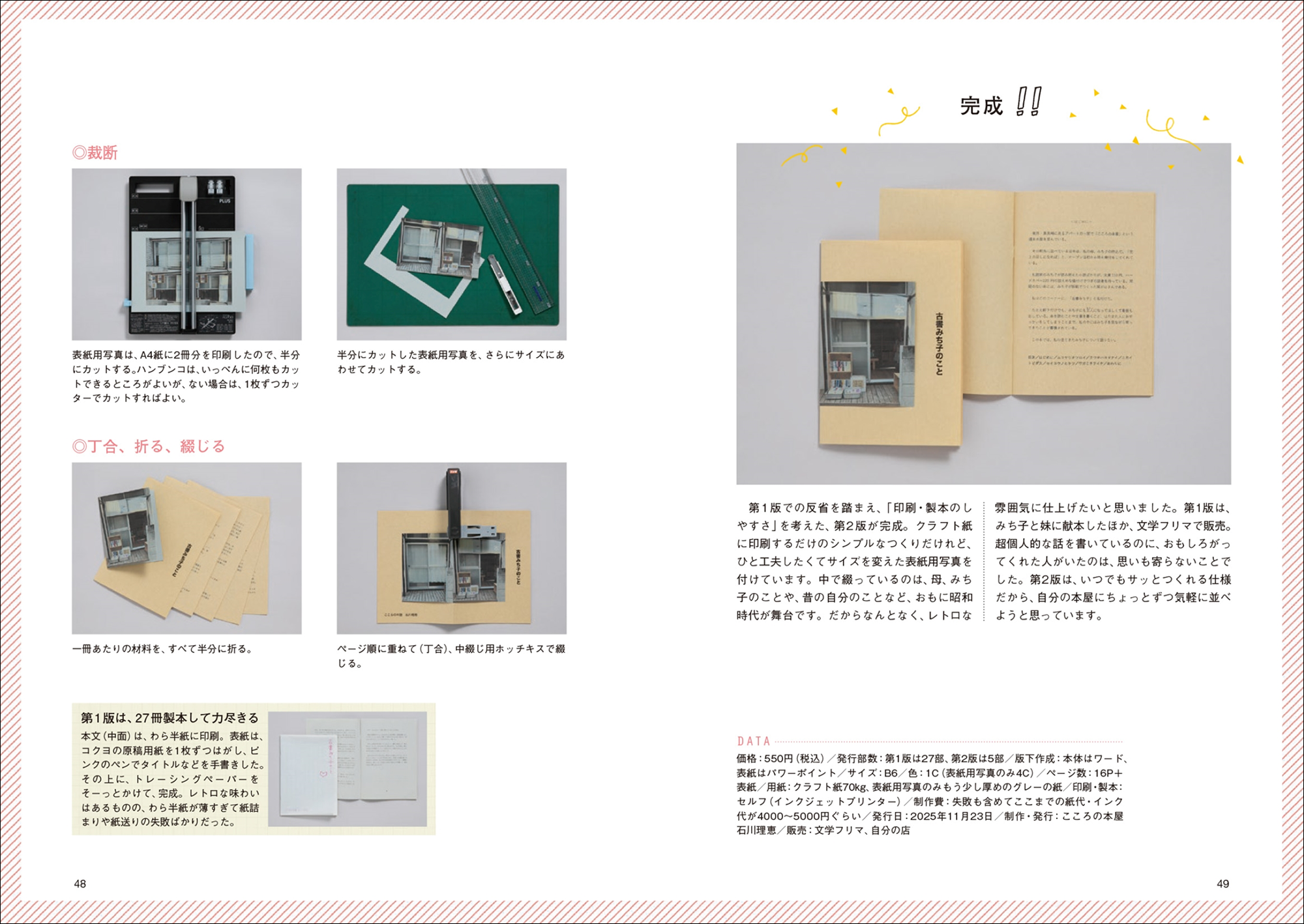 さらに、実践的なノウハウも徹底網羅。独特の風合いが魅力のリソグラフ印刷のコツから、一冊ずつ丁寧に仕上げる手製本のテクニック、気になる予算のヒントまで、初心者でも迷わず一歩を踏み出せる具体的なアドバイスが満載です。また、作家・安達茉莉子さんへの特別インタビューでは、創作の舞台裏に迫ります!