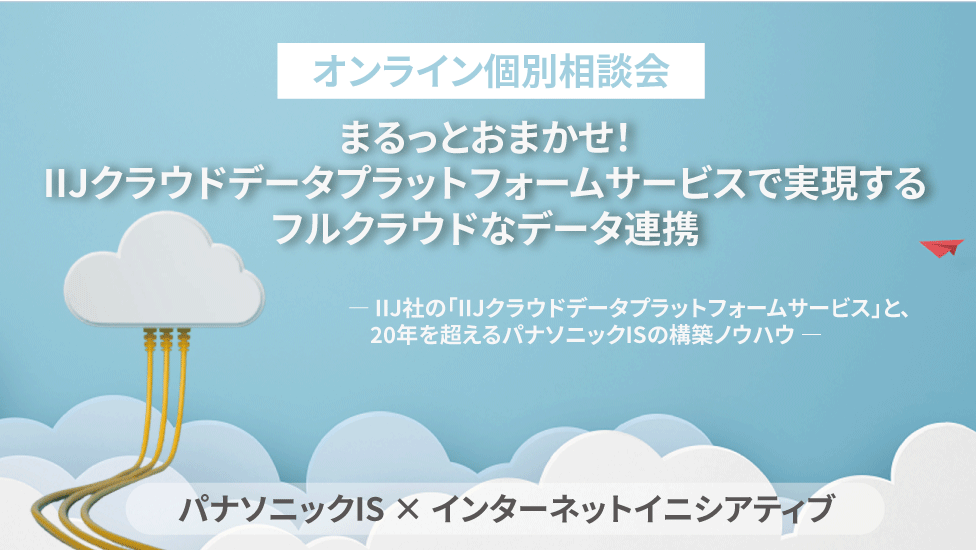 今回の個別相談会では、インターネットイニシアティブ社が提供する「IIJクラウドデータプラットフォームサービス」と、データ連携に20年携わったパナソニックISのもつ構築ノウハウ・Salesforceアダプターを組み合わせて、Salesforceとのデータ連携におけるお客様のお悩みに寄り添った解決の糸口を一緒に模索します。