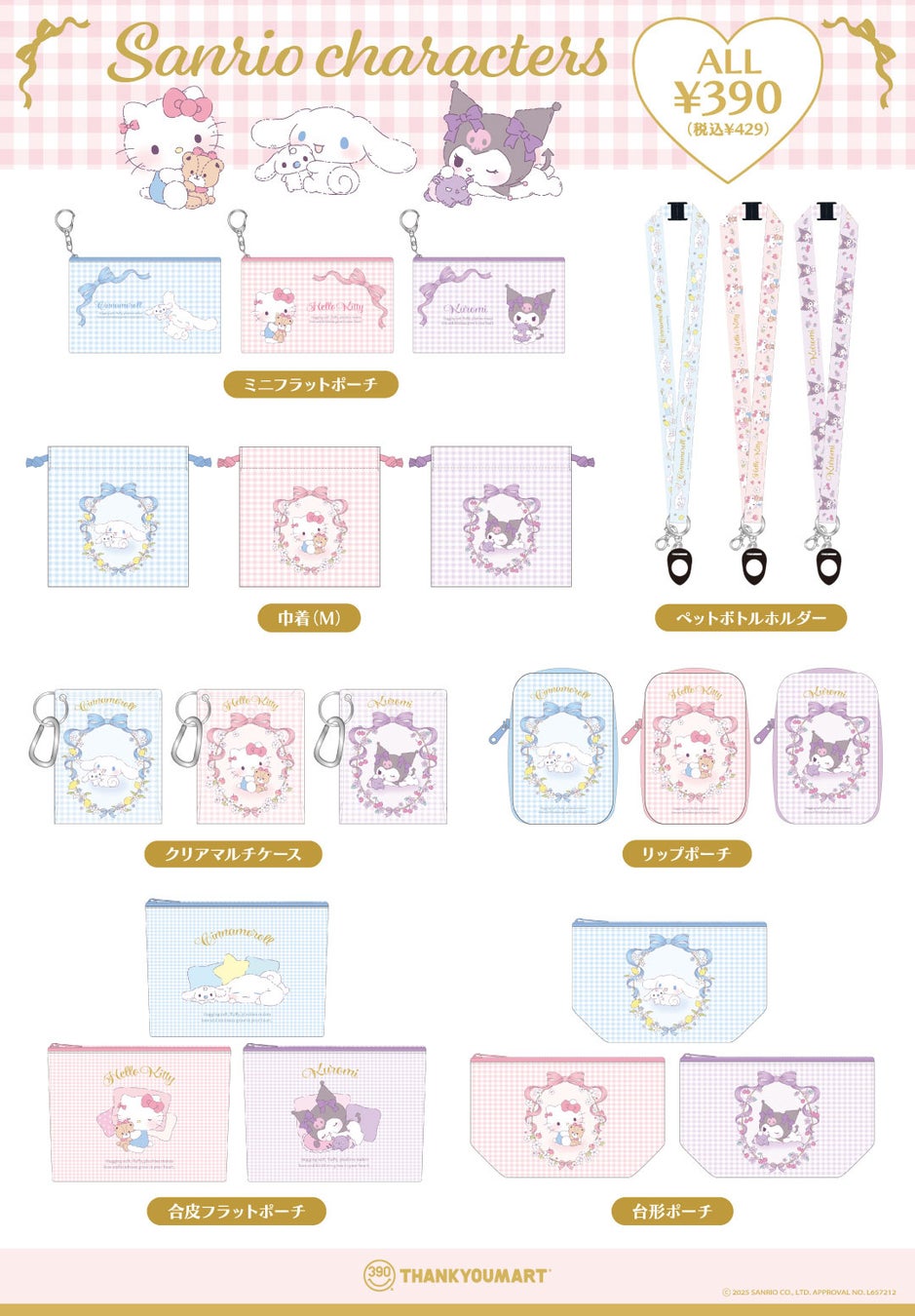 「Be Smile, Be Kawaii」をテーマに、全品390円(税込429円)でバラエティ豊かなアパレル雑貨を揃える「サンキューマート」は、株式会社サンリオの大人気キャラクター「ハローキティ」「シナモロール」「クロミ」が”おともだち”のぬいぐるみを持ったデザインアイテムを、全国のサンキューマート店舗で4月下旬より入荷次第販売開始いたします。