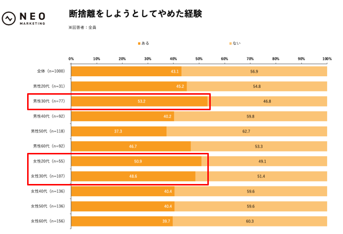 マーケティング支援事業を提供する株式会社ネオマーケティング(所在地:東京都渋谷区)は2026年3月3日(火)~2026年3月4日(水)の2日間、全国の20歳以上の男女で断捨離をしたことがある人を対象に「断捨離」をテーマにインターネットリサーチを実施いたしました。