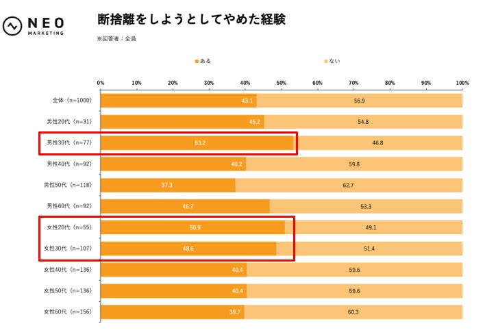 ■断捨離をしようとしてやめた経験(n= 1,000)