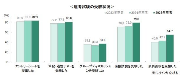○ES提出、筆記試験、面接試験とも約8割が経験。最終面接受験者は過半数に(42.7%→54.7%)