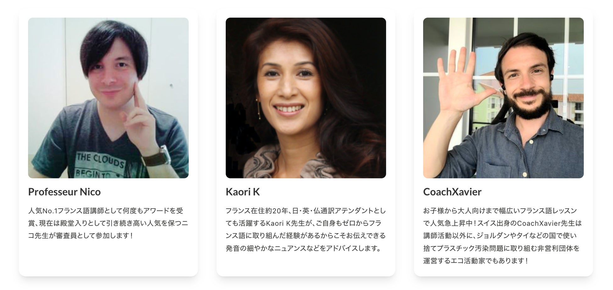 人気No.1フランス語講師として何度もアワードを受賞、現在は殿堂入りとして引き続き高い人気を保つニコ先生が審査員として参加しました!