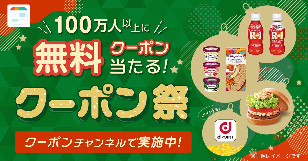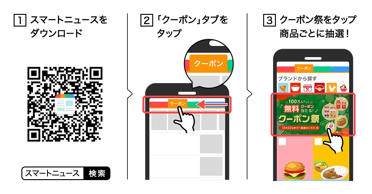 世界中の良質な情報を必要な人に送り届けることをミッションとするスマートニュース株式会社(所在地:東京都渋谷区、代表取締役社長 CEO:浜本階生)は12月2日から22日まで、ニュースアプリSmartNewsの「クーポンチャンネル」で、コンビニエンスストア・飲食店の人気商品の無料クーポンや株式会社NTTドコモ(以下、ドコモ)のdポイントなどが、100万人以上に当たる大型キャンペーン「クーポン祭」を開催します。