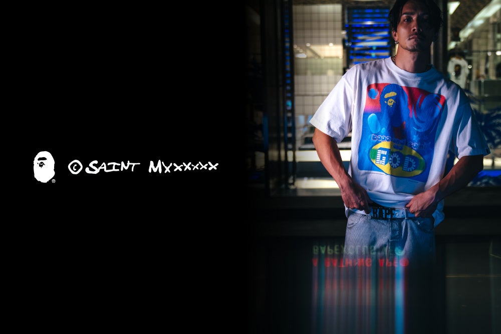 両ブランドのこだわりが詰まったコレクションは、A BATHING APE®と©SAINT Mxxxxxxの正規取り扱い店舗、ならびにBAPE.COMにて、2025年8月23日(土)に発売します。