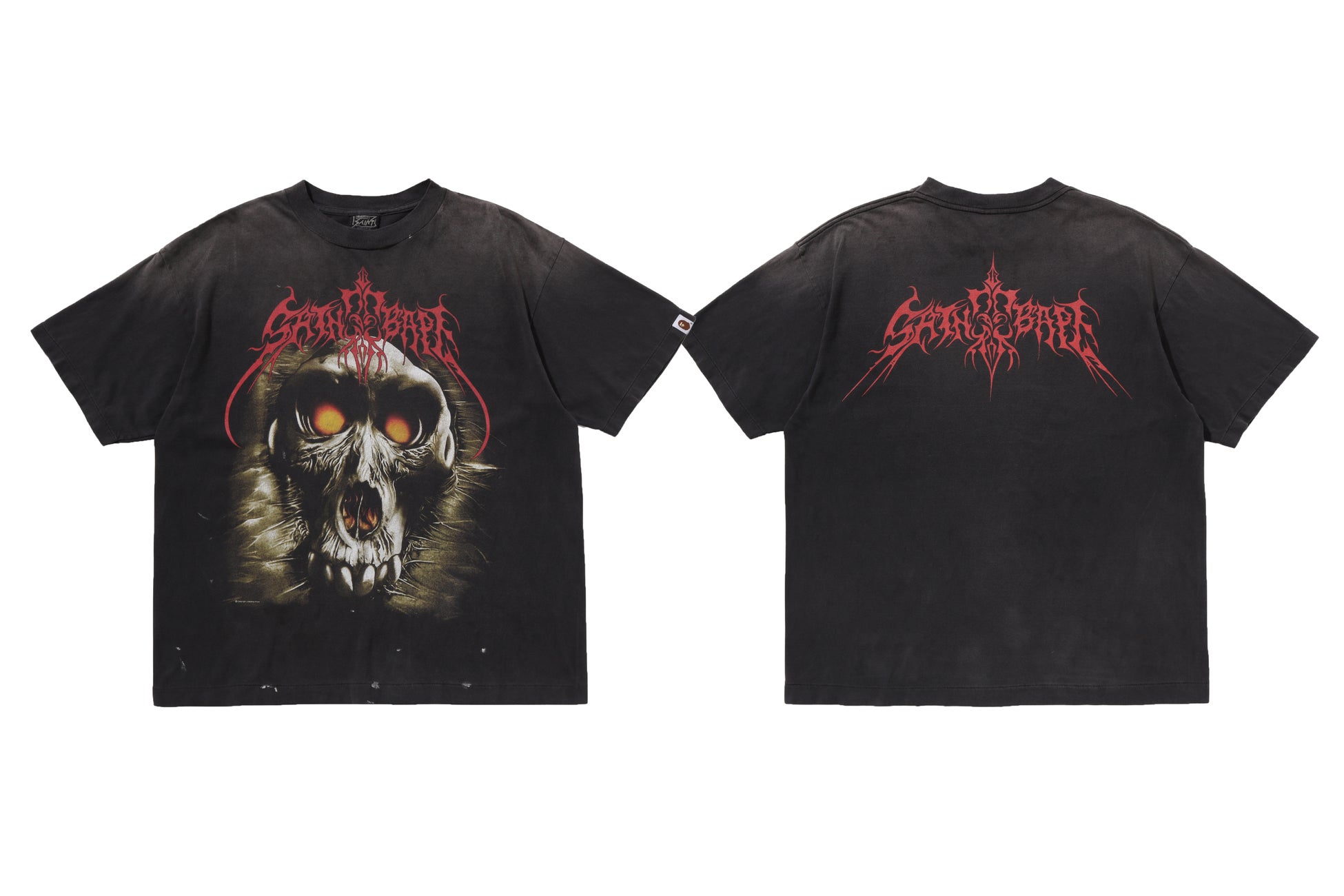 4度目となる今回のコラボレーションは、Tシャツ5型がラインアップします。コラボレーションを象徴する“SAINT BAPE®”のロゴをはじめ、BAPE®のアイコンである“APE HEAD”や猿のモチーフ、さらに初期のアーカイブコレクションから着想を得たシルクスクリーンプリントなどを、©SAINT Mxxxxxx独自のフィルターでアレンジ。グラフィックはフロントやバックに大胆に配され、ブランドの世界観を力強く表現しています。