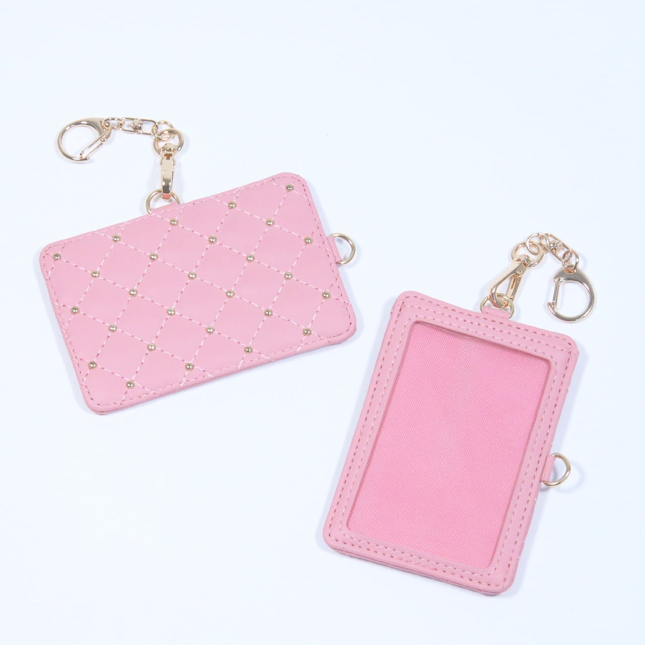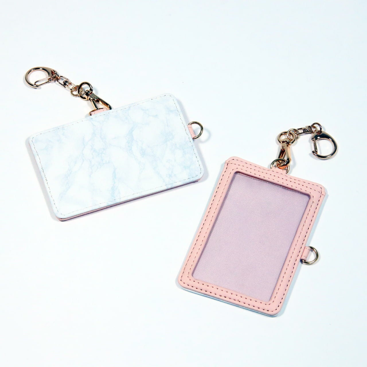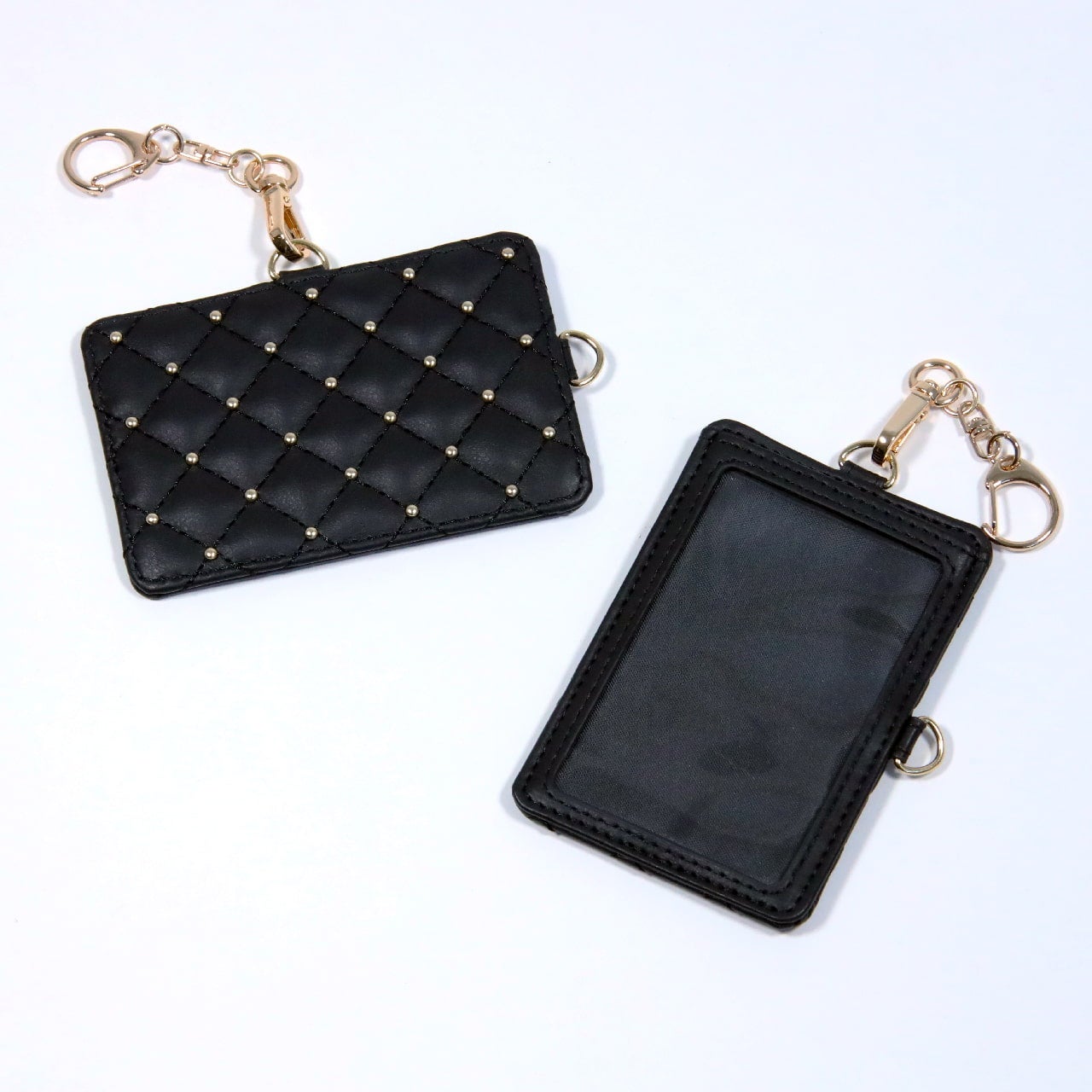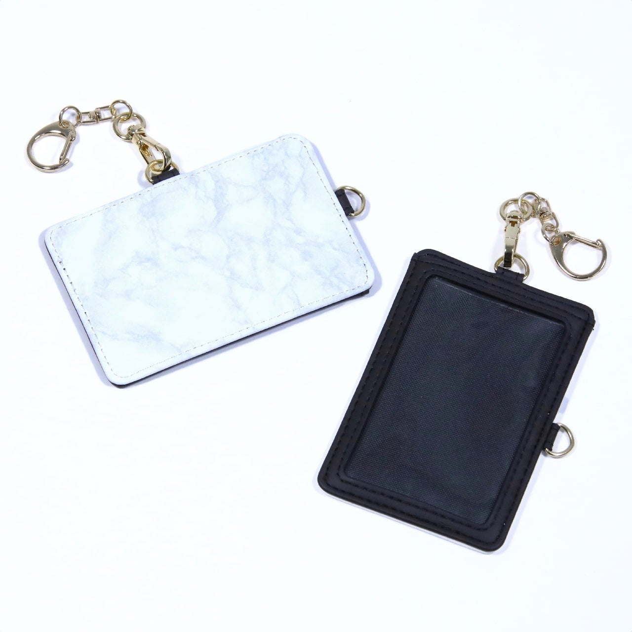 金具が2箇所に付いているので、入れたいカードの向きによってナスカンを付け替えれば、タテ向きヨコ向きどちらのカードでも、正しい向きで持ち歩けます!