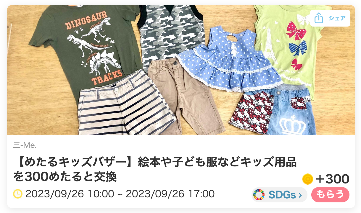 内容:めたる(燕三条の通貨名)でキッズ用品がやりとりできるバザー。