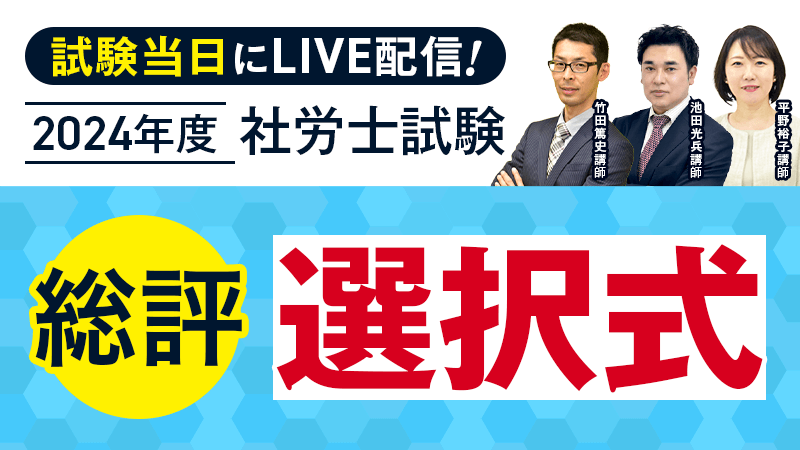 アガルートアカデミーは、令和6年(2024年)社会保険労務士試験の試験当日に「解答速報」「選択式・択一式の総評」「合格ライン予想」ライブ配信を会員登録不要で無料公開いたします。ぜひ、試験の振り返りにお役立てくださいませ。