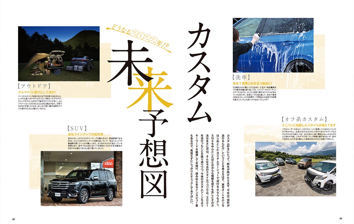 株式会社三栄(本社所在地:東京都新宿区、代表取締役社長:伊藤 秀伸)は、2022年1月15日(土)に「スタイルワゴン 2022年2月号」を発売いたします。発表されたばかりのトヨタ 新型ノア&ヴォクシー、そしてホンダ 新型ステップワゴンの最速レポートをはじめ、2022年のカスタムトレンド情報が満載。更に今月号には特別付録として小冊子が2冊も付いてきます!