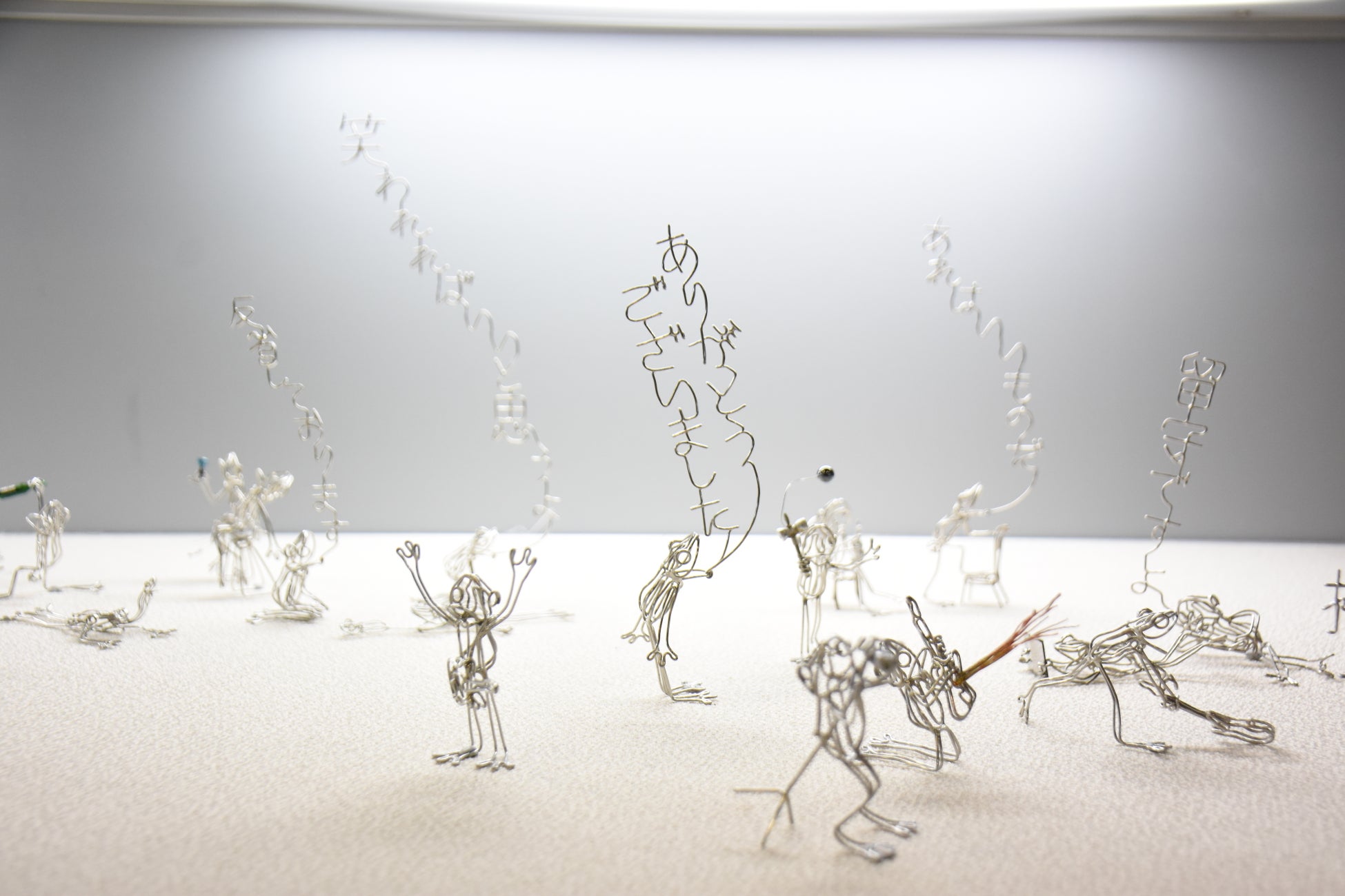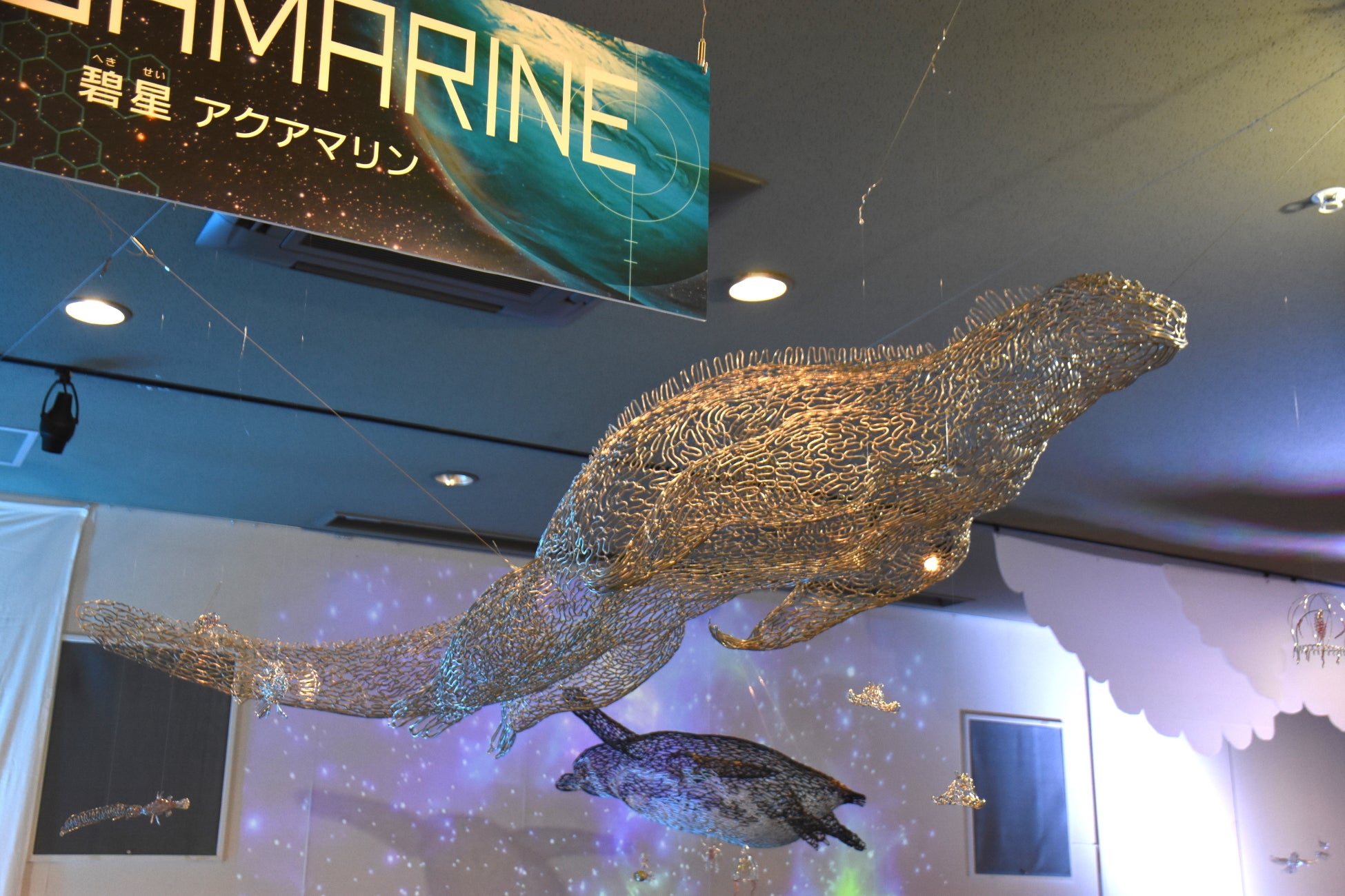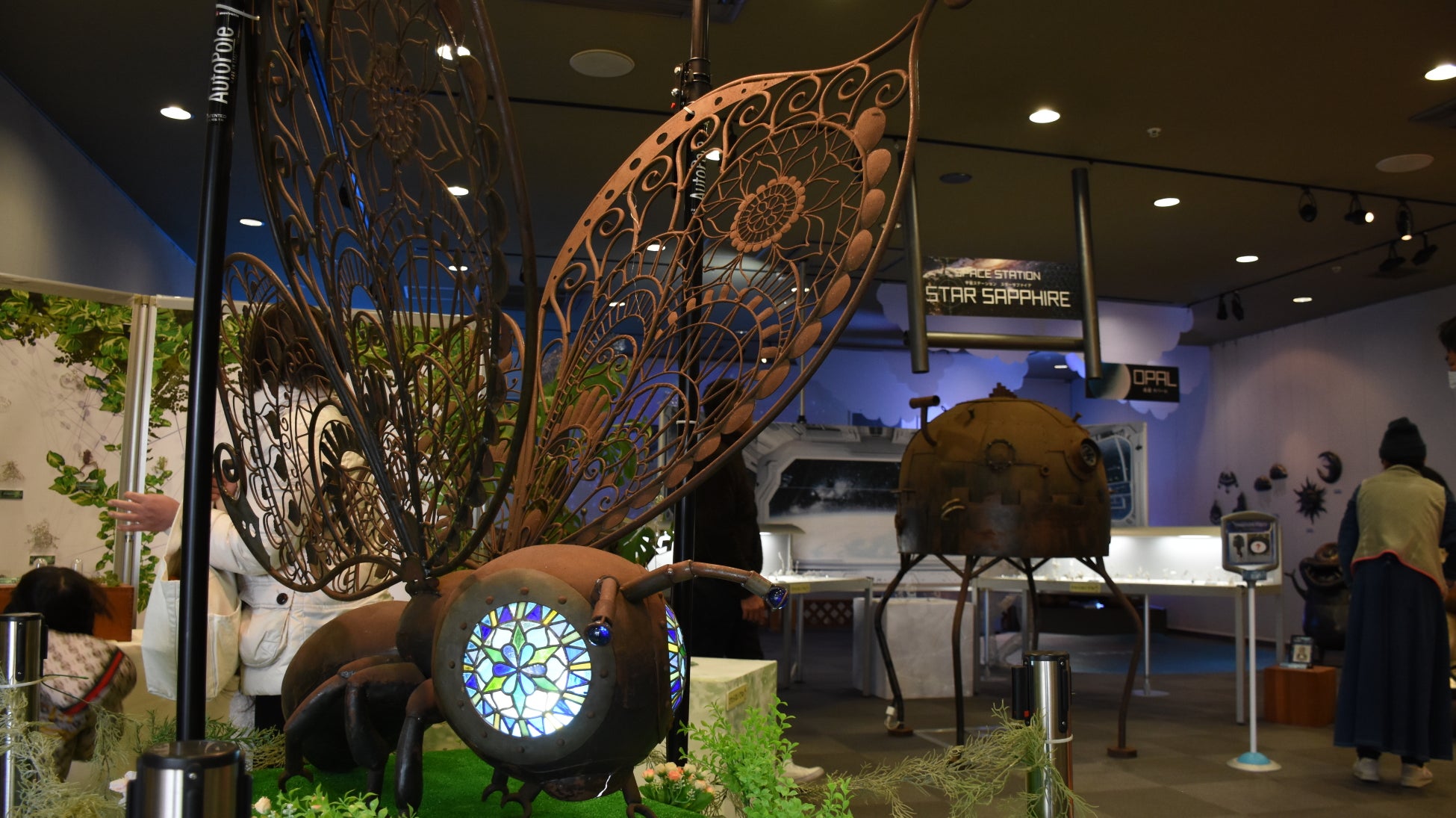 2月24日(月)まで行うこの企画展は、三重県出身の針金造形作家・橋寛憲さんと地元・豊橋出身の鉄の造形作家・マノミホさんという金属のプロフェッショナル2人の作品約180点を展示。企画展示室に架空の銀河系の世界を創造しました。