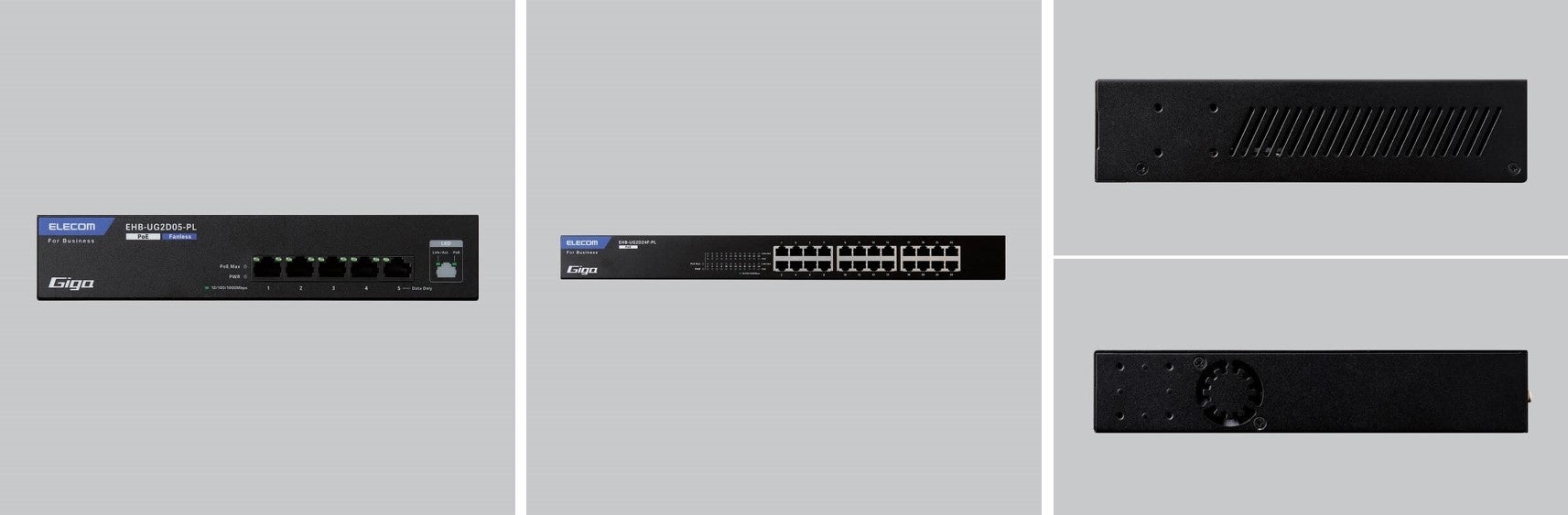 5ポートモデル(EHB-UG2D05-PL)のみアップリンクポートを除く4ポートがPoE給電に対応しています。