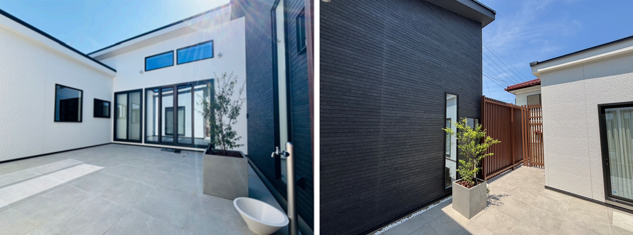 一方、中庭側は室内から日常的に視線が向かう場所であることから、ニューピッコロストーン調の白を基調とし、モダンさと温かみを併せ持つ印象にしました。