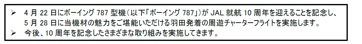 【羽田空港発着「ボーイング787 JAL就航10周年記念チャーター」 概要】