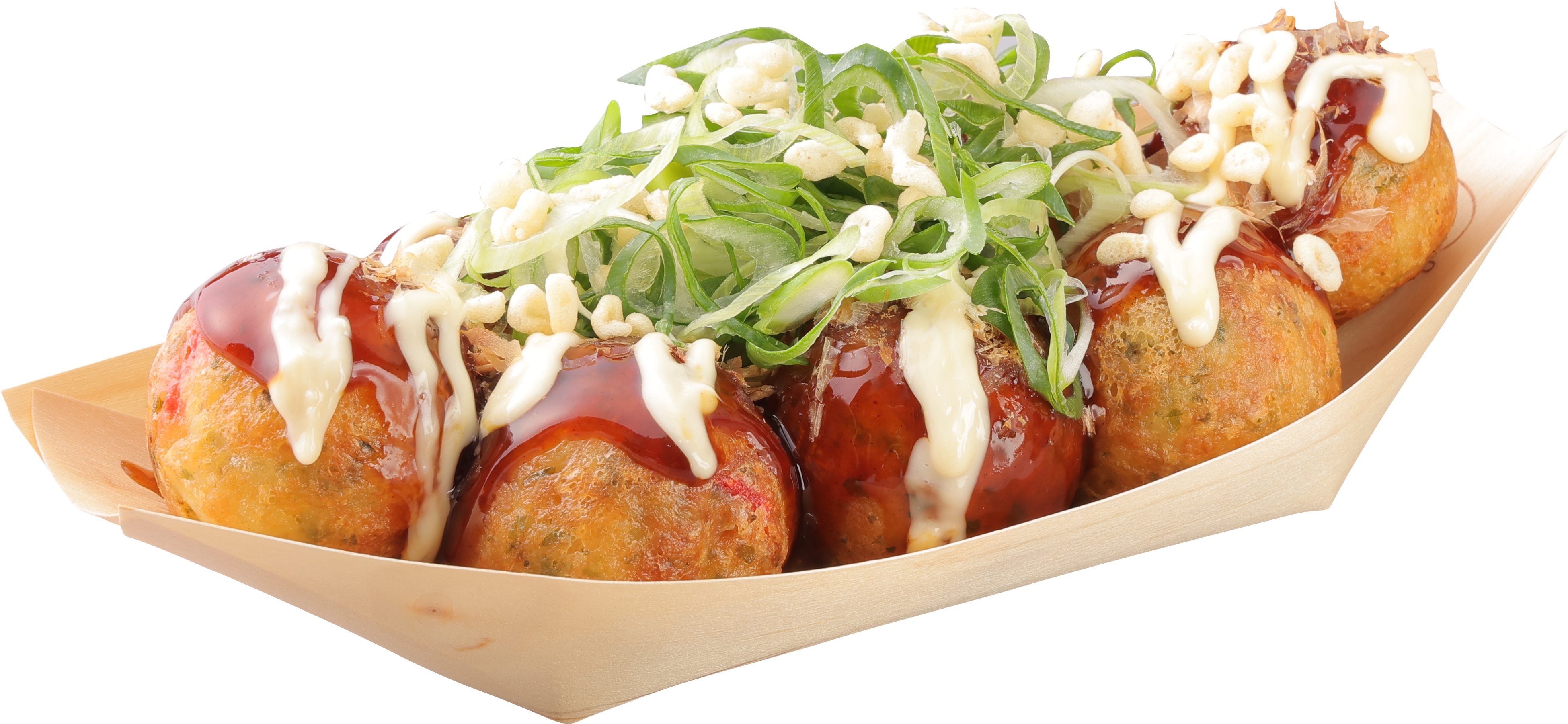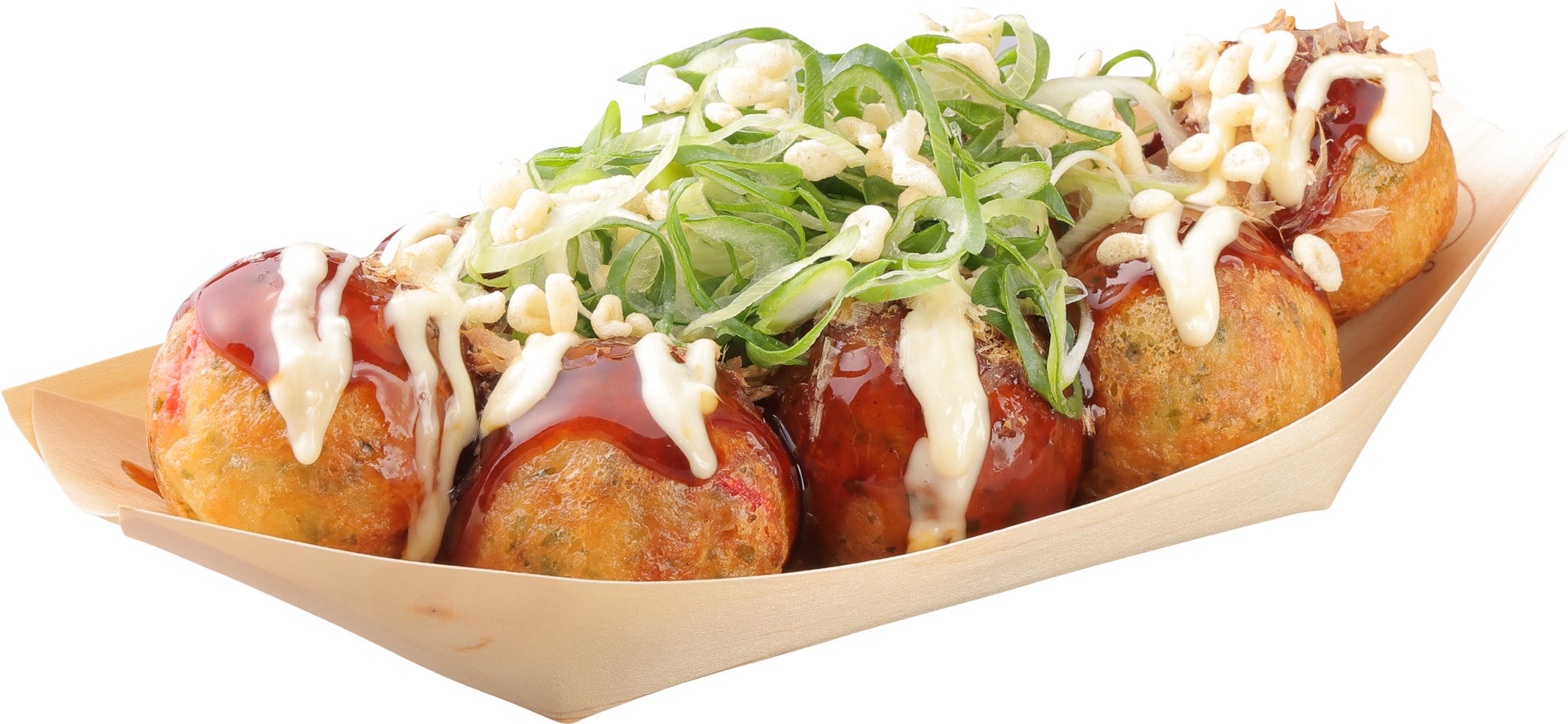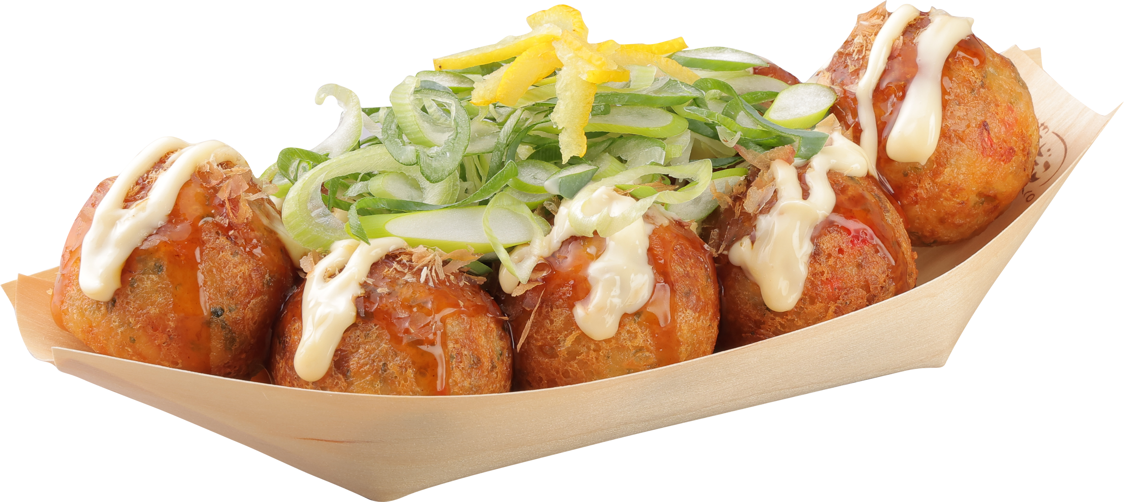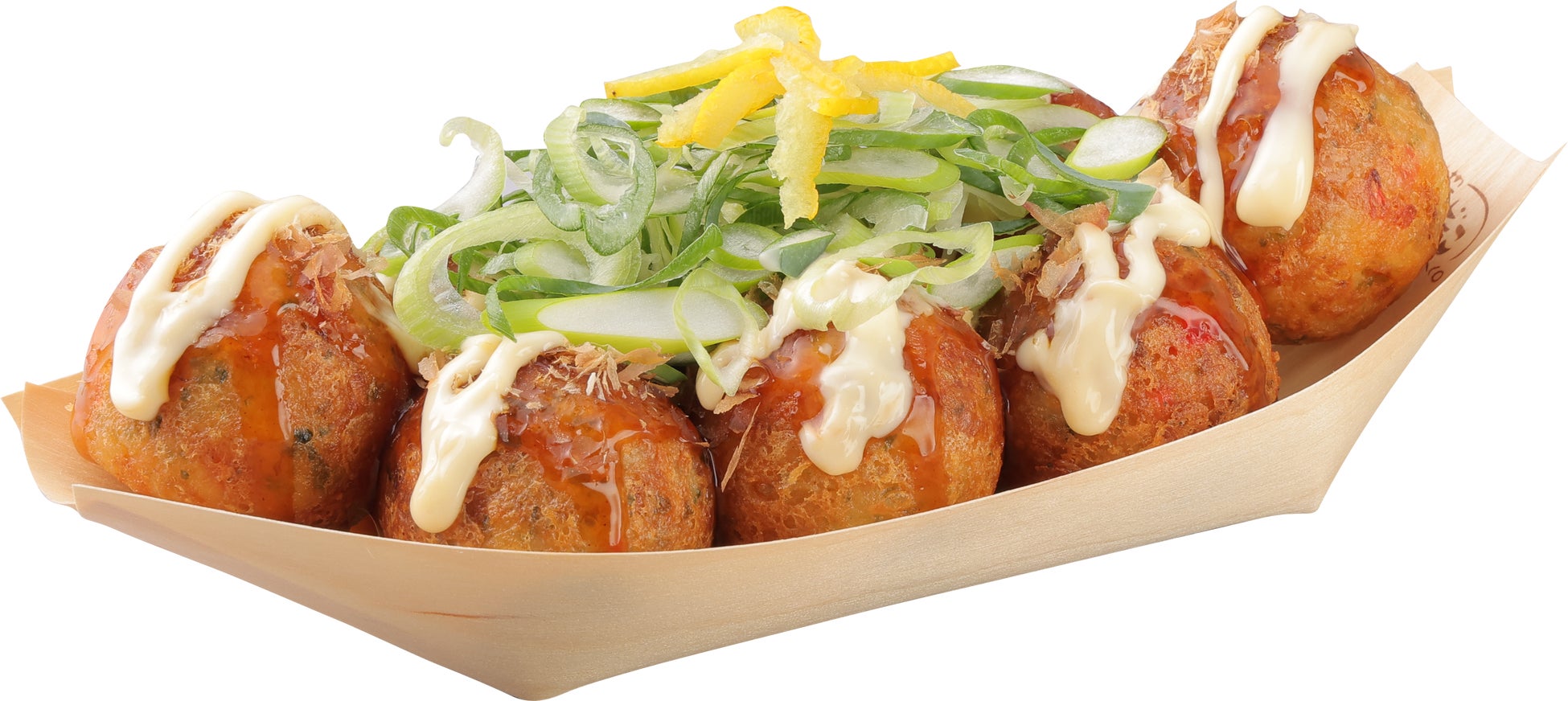 期間限定メニューでも人気の高い商品で、特製の “甘口ソース” と、風味豊かな削り節、マヨネーズをかけ、そこに主役となる “九条ねぎ” を添えました。