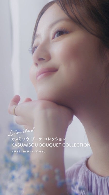 今回のキービジュアルでは、2025年春のメイクアップテーマである “KASUMISOU BOUQUET COLLECTION”をイメージした春の訪れを感じさせる優しく包みこむような空間の中で、儚くも可憐な美しさを引き出すメイクアップを施しました。あどけない印象を与えつつも、大人の魅力も感じる今田さんの表情は、新ビジュアルの儚く美しいイメージをさらに盛り立てています。